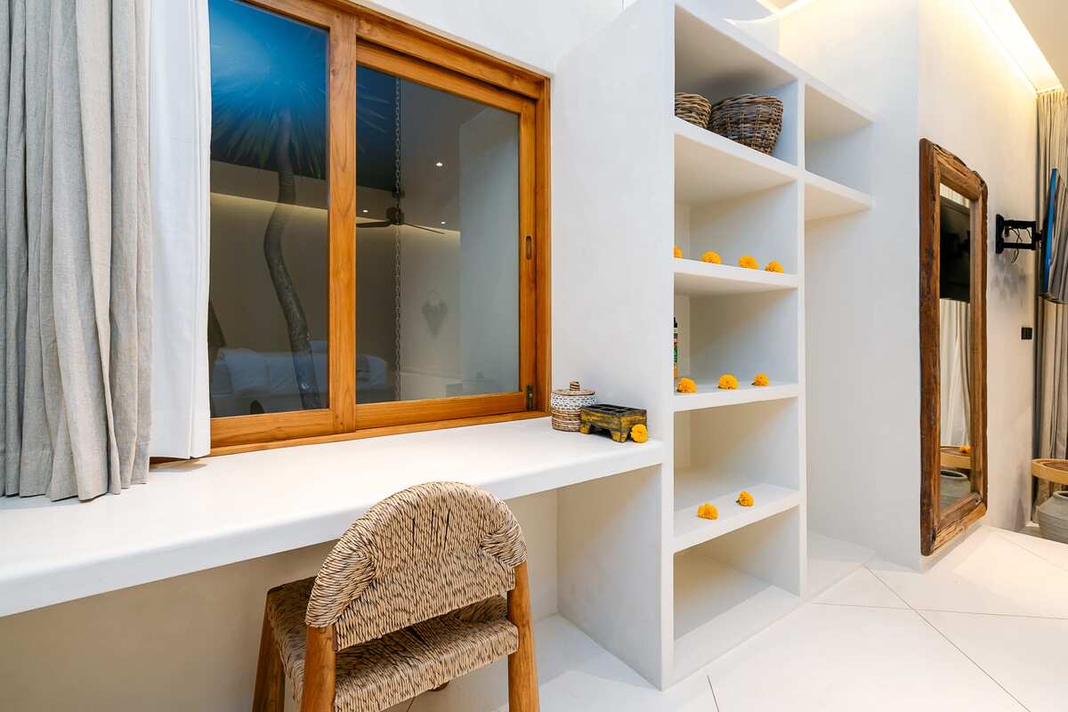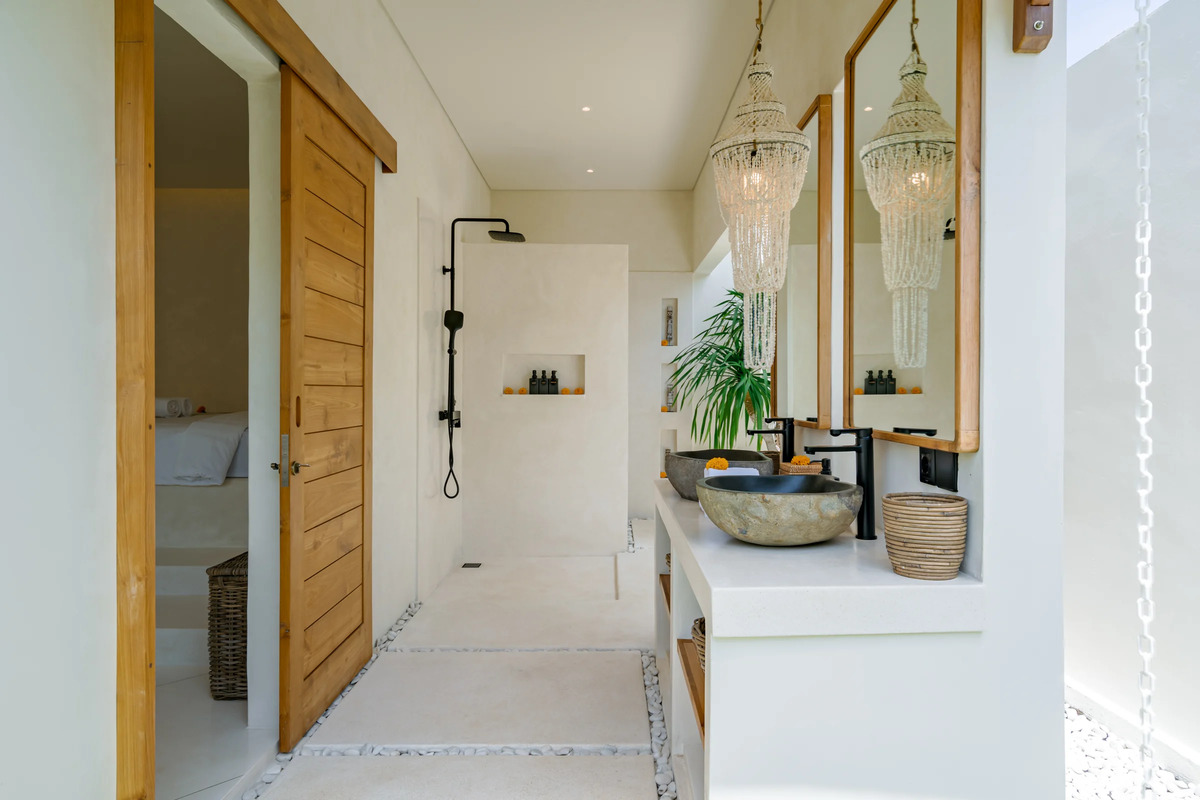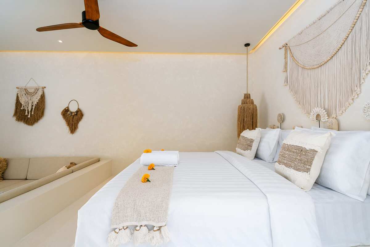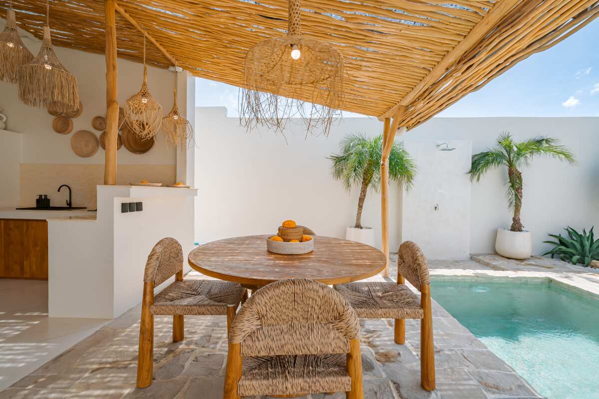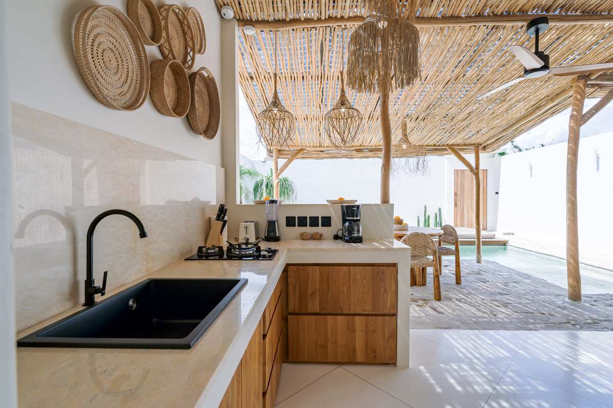 Villa Papaz is a brand-new, stylish villa perfect for couples or solo travelers. It features a spacious bedroom with a king-size bed, ensuite bathroom, work desk, and smart TV. The open-air living area includes a fully equipped kitchenette and flows seamlessly to the pool. Located in Seseh, it’s just a short walk to the beach and right next to the trendy Luna Beach Club.