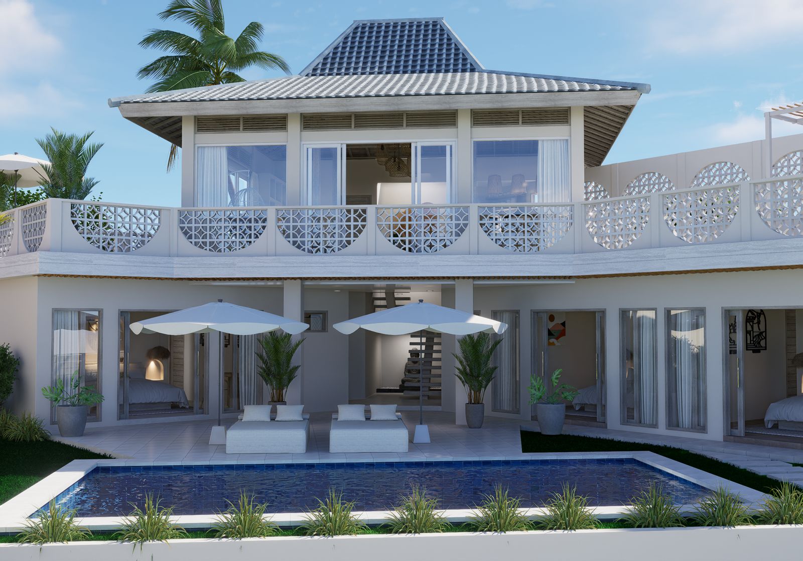 This stunning two-story villa blends modern elegance with tropical charm, offering four spacious bedrooms and open-concept living areas designed for comfort and style. Floor-to-ceiling windows invite natural light, while the lush surroundings create a serene retreat. The highlight of this villa is the rooftop sunset viewing terrace, where you can unwind and take in breathtaking panoramic views as the sun dips below the horizon. Complete with a private pool and thoughtfully designed outdoor spaces, this villa is the perfect fusion of luxury and tropical living.