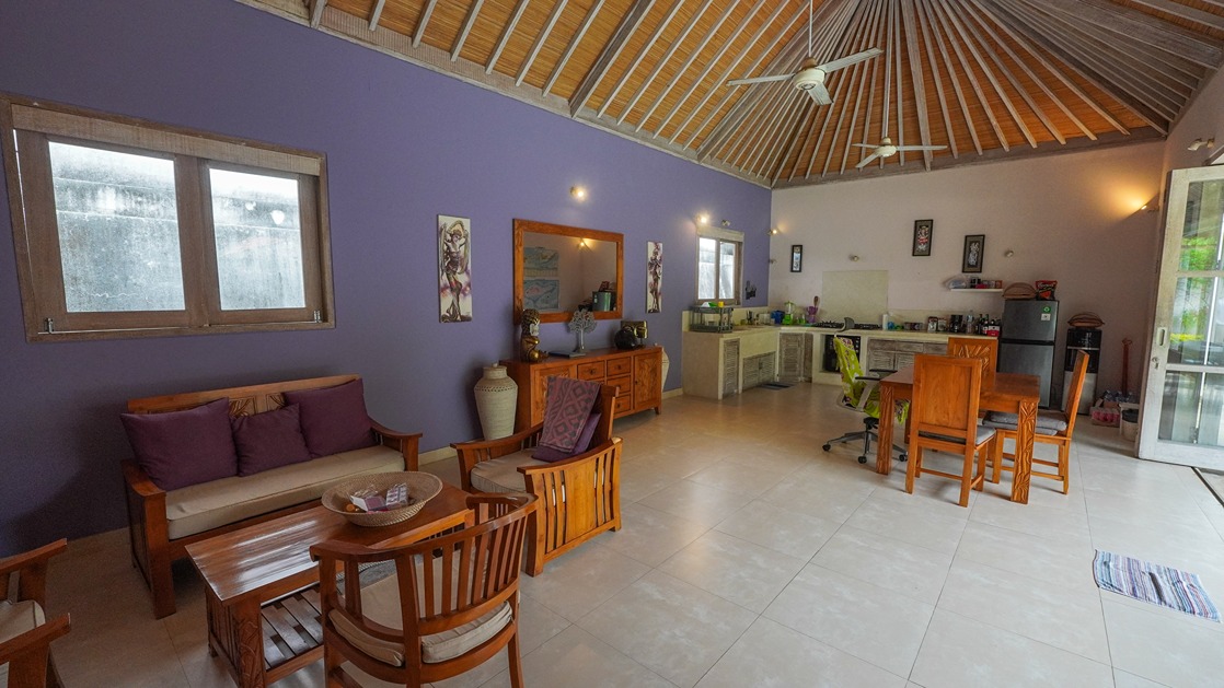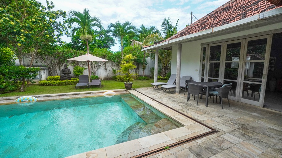 Discover this charming single-story 2-bedroom villa, designed in elegant tropical Indonesian style. Surrounded by lush greenery, the villa features airy living spaces and seamless indoor-outdoor flow. Both bedrooms come with private bathrooms, offering comfort and privacy. Step outside to enjoy your own private pool, perfect for relaxing in the island sun. A serene retreat that blends natural beauty with traditional charm.