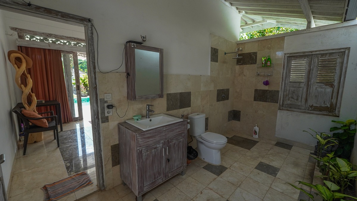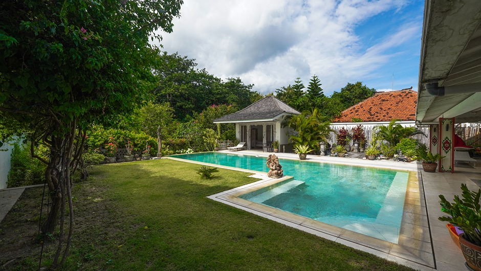 Escape to this beautiful single-story 2-bedroom villa, crafted in timeless tropical Indonesian style. Set on expansive grounds, the villa boasts a very large garden and a generous private pool, creating your own secluded oasis. The open living spaces blend effortlessly with the lush outdoors, while each bedroom offers comfort and privacy with its own ensuite bathroom. A perfect sanctuary for those seeking space, serenity, and authentic island charm.