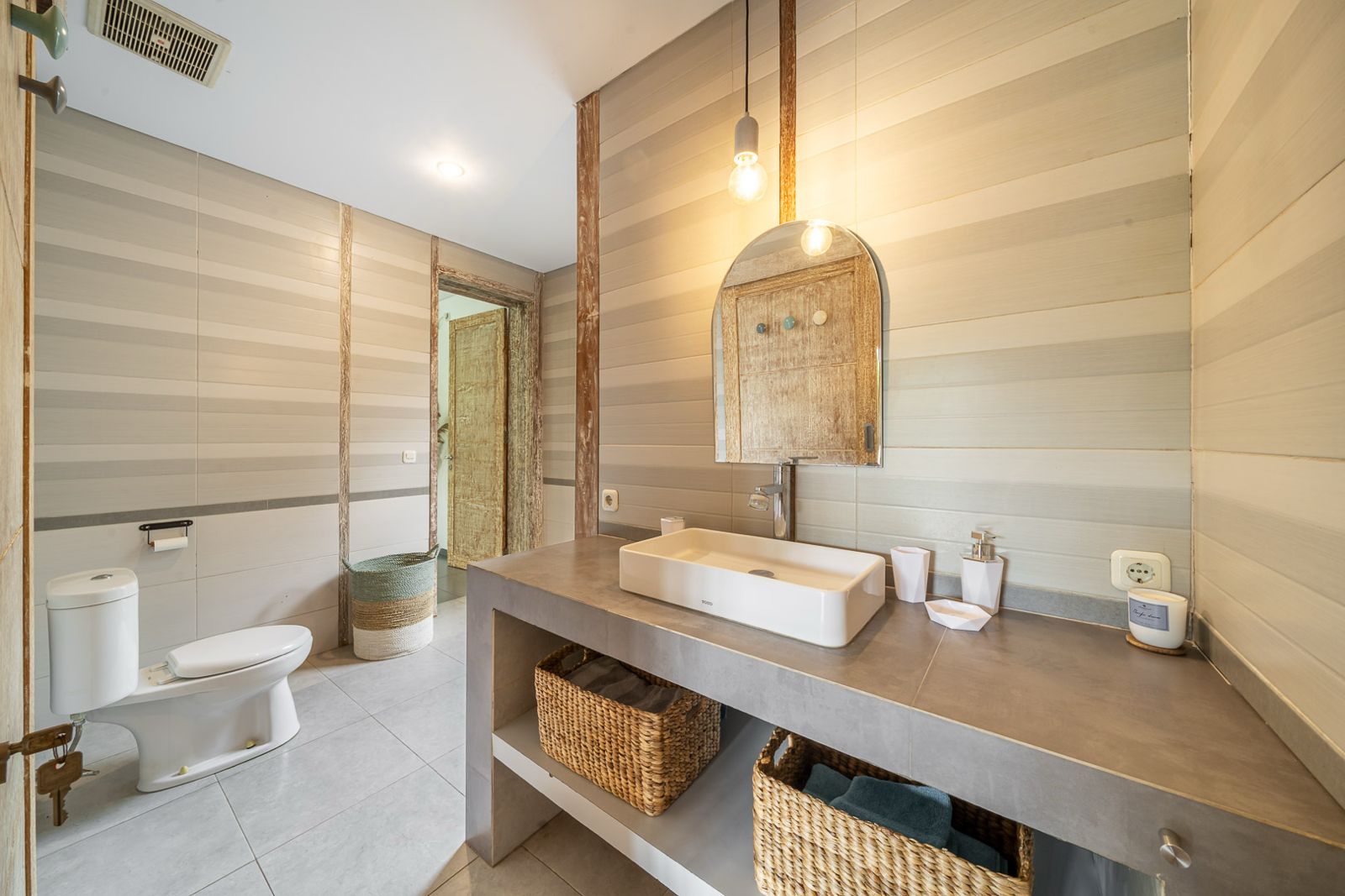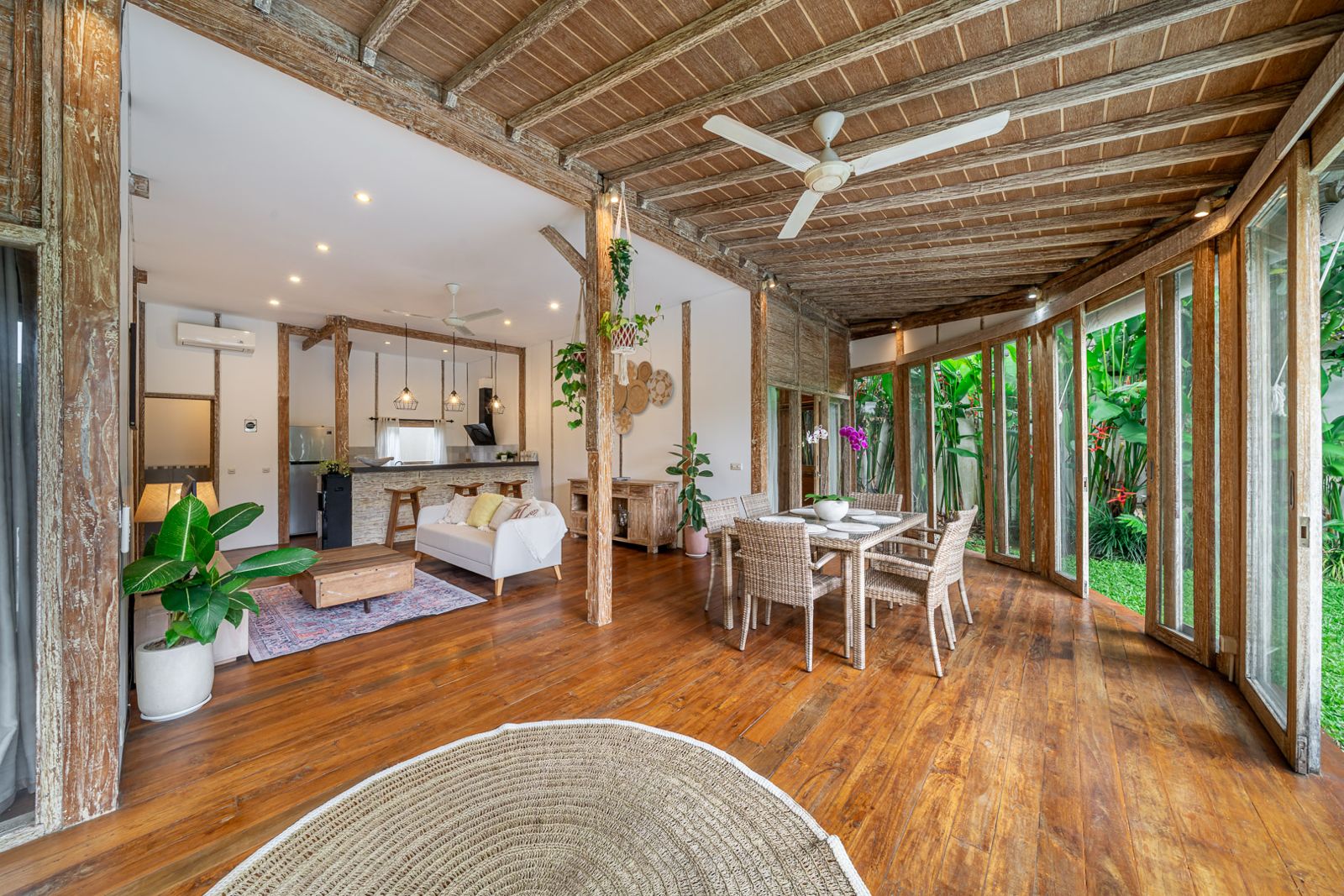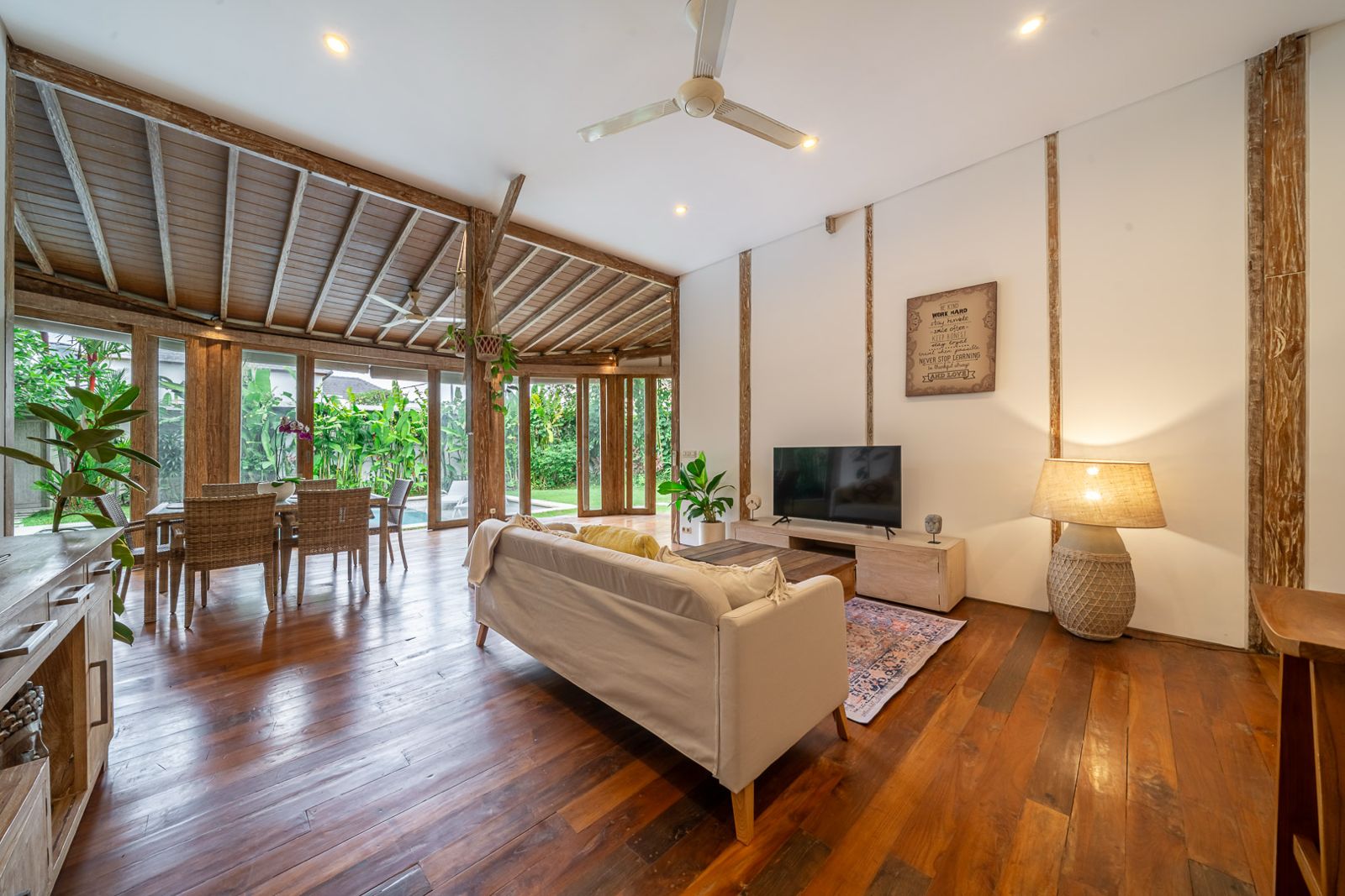 This charming single-floor villa offers a perfect blend of comfort and tropical elegance. Featuring three cozy bedrooms, each designed for relaxation, the villa boasts an inviting open-plan living space that seamlessly connects to the outdoors. A sparkling private pool sits at the heart of the property, surrounded by a lush, expansive garden—ideal for lounging, entertaining, or simply enjoying Bali’s serene atmosphere. With its warm ambiance and thoughtful design, this villa is a delightful retreat for families or those seeking a peaceful getaway.