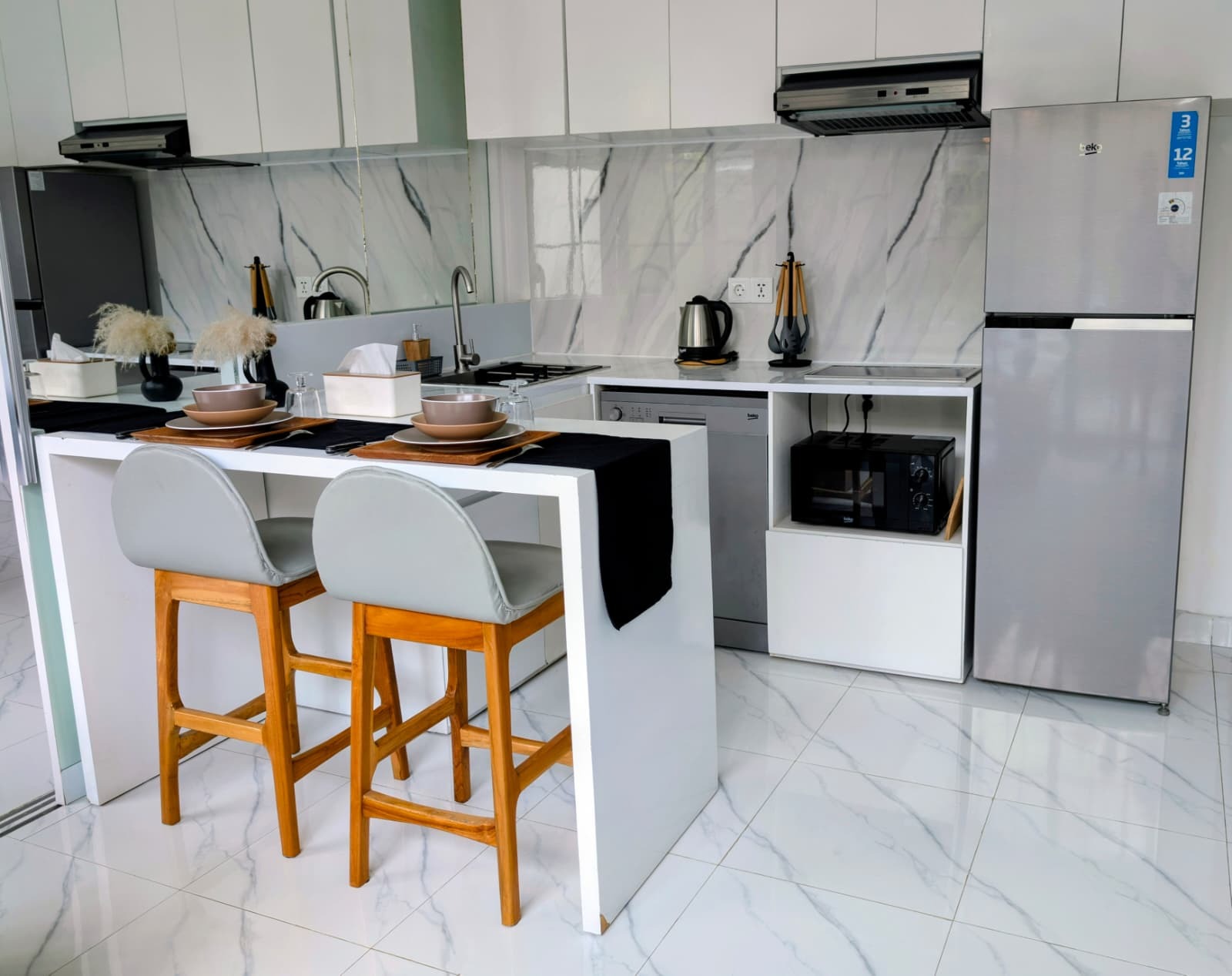This charming 1-bedroom loft sits on 75m² of land with a 50m² building, offering a cozy yet stylish living space. Designed with a modern tropical touch, it features an open-plan layout that maximizes natural light and space. The loft-style bedroom overlooks the living area, while outside, a private pool provides the perfect spot to relax and unwind — an ideal compact retreat for modern island living.