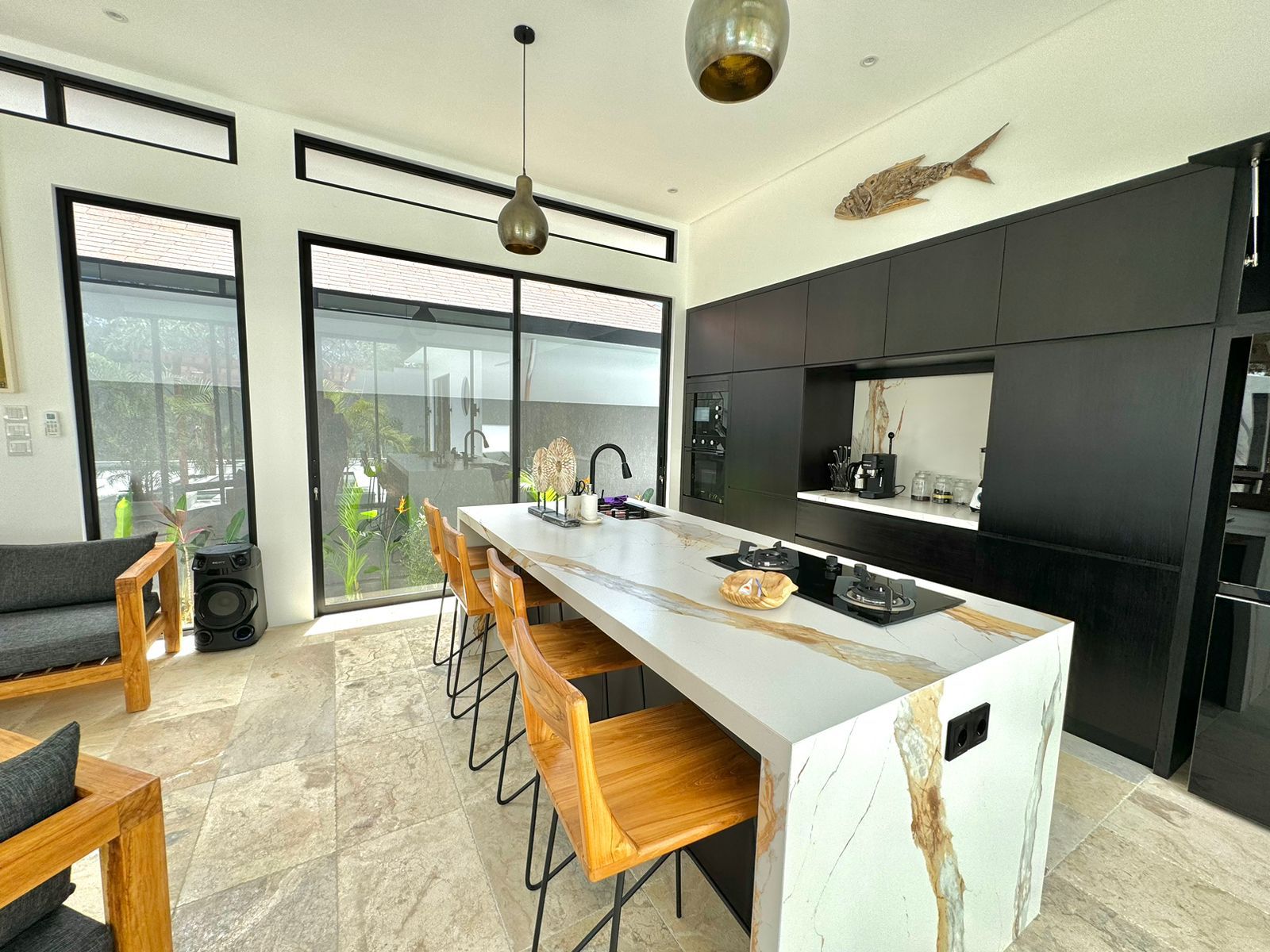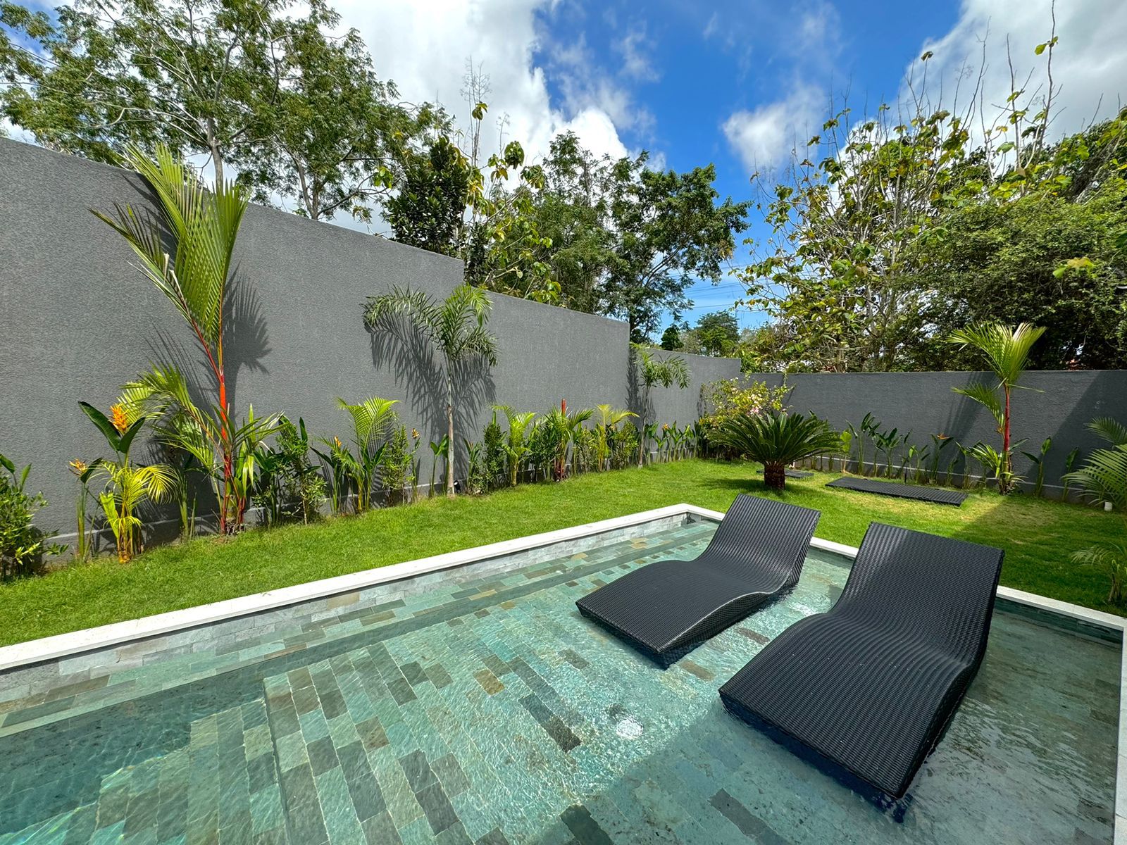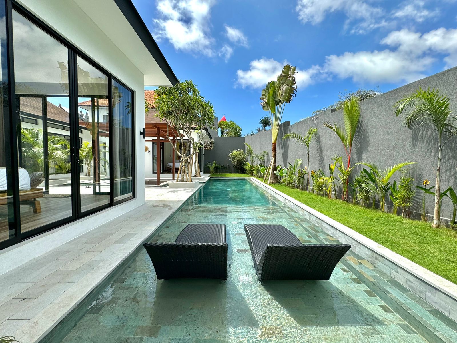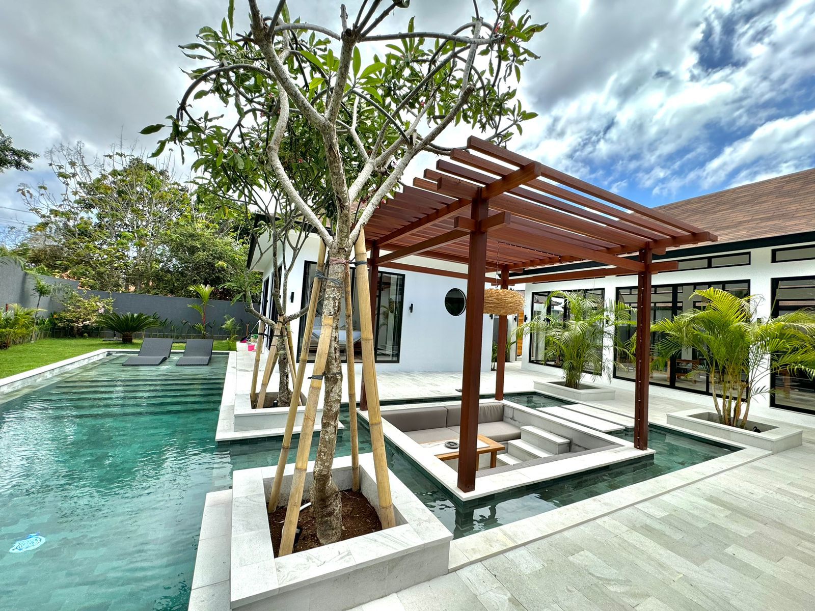 This stylish one-level villa offers three generously sized bedrooms, each with a private bathroom, along with an extra guest toilet for added comfort. The open-plan living and kitchen area flows effortlessly to the outdoor space, where a private pool and sunken lounge provide the ideal spot for unwinding or hosting in a peaceful tropical environment.