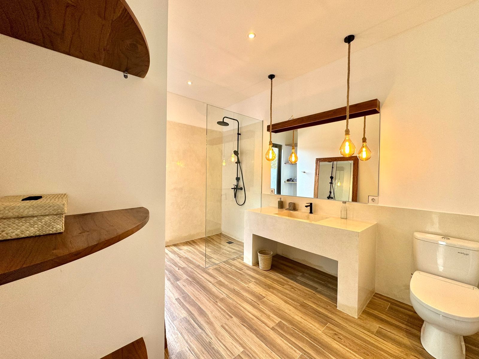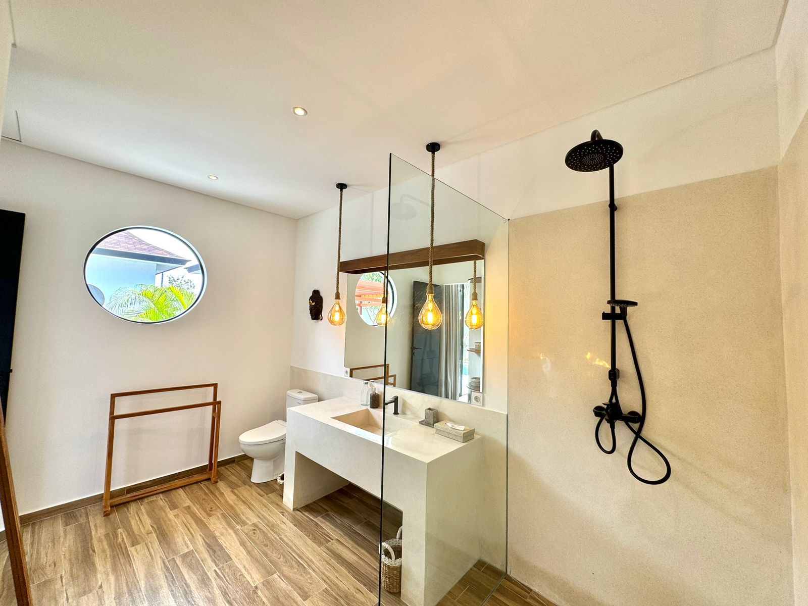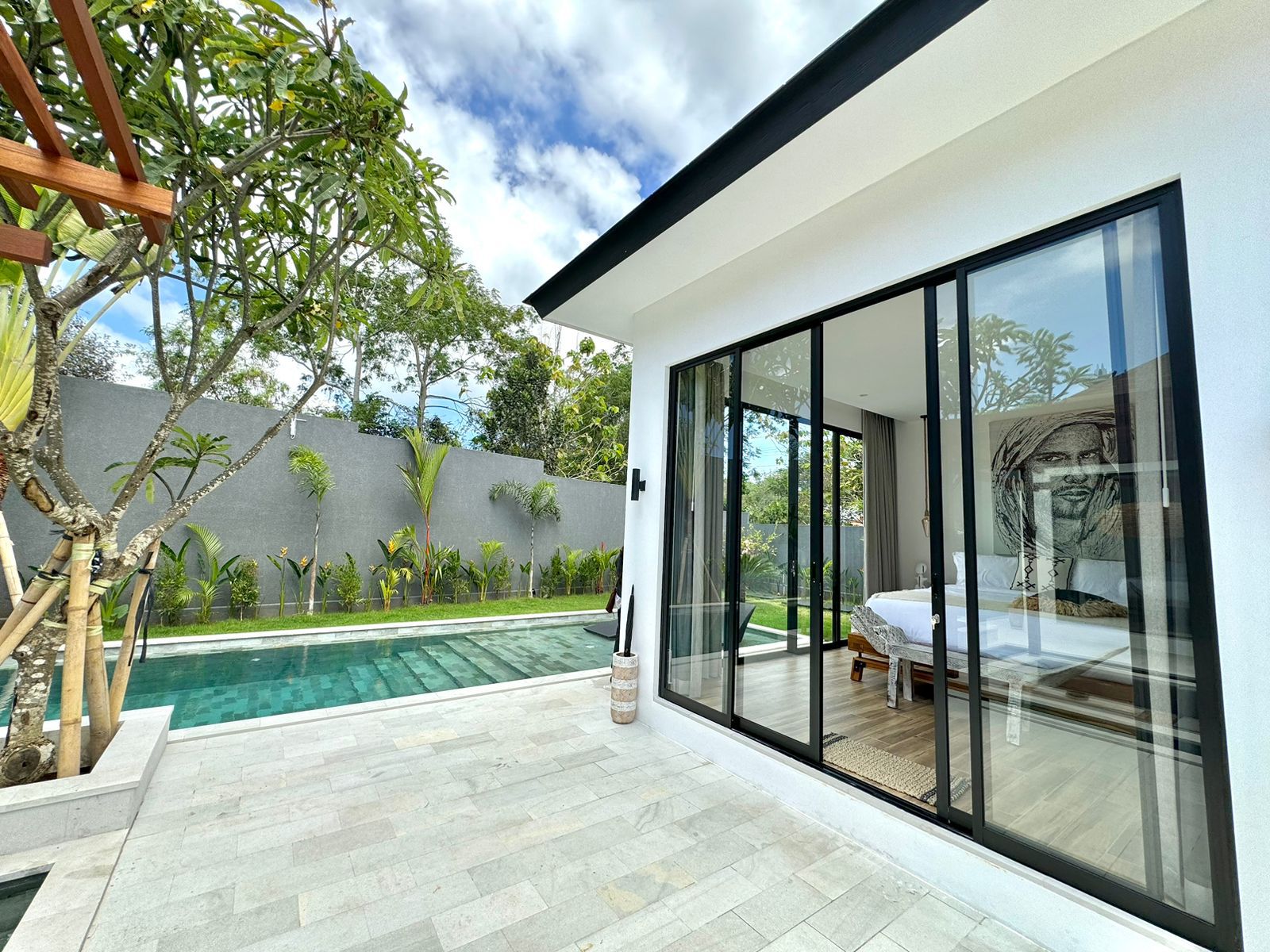 This stylish one-level villa offers three generously sized bedrooms, each with a private bathroom, along with an extra guest toilet for added comfort. The open-plan living and kitchen area flows effortlessly to the outdoor space, where a private pool and sunken lounge provide the ideal spot for unwinding or hosting in a peaceful tropical environment.