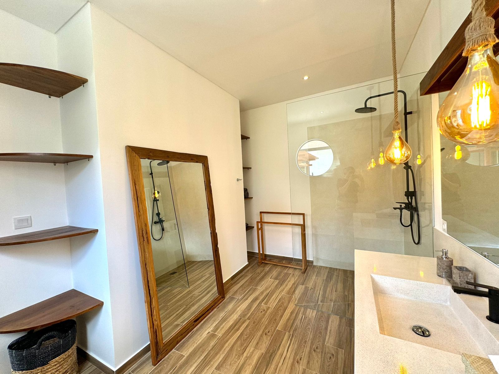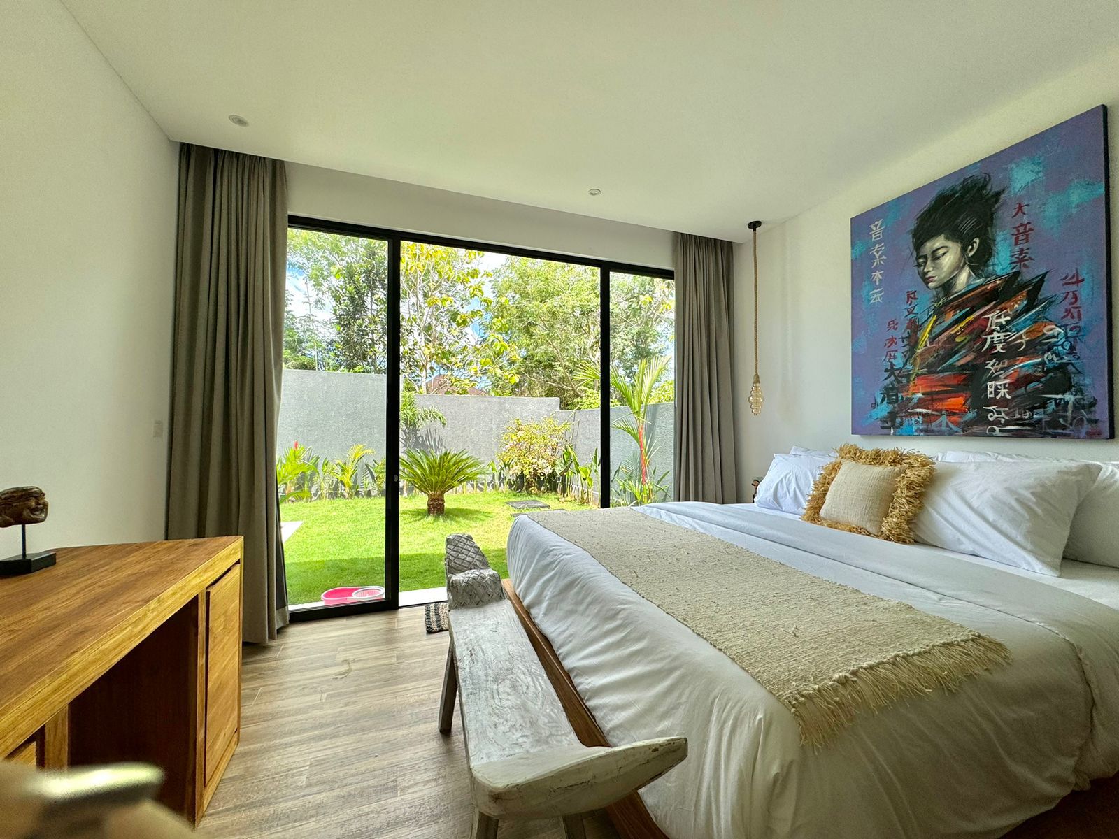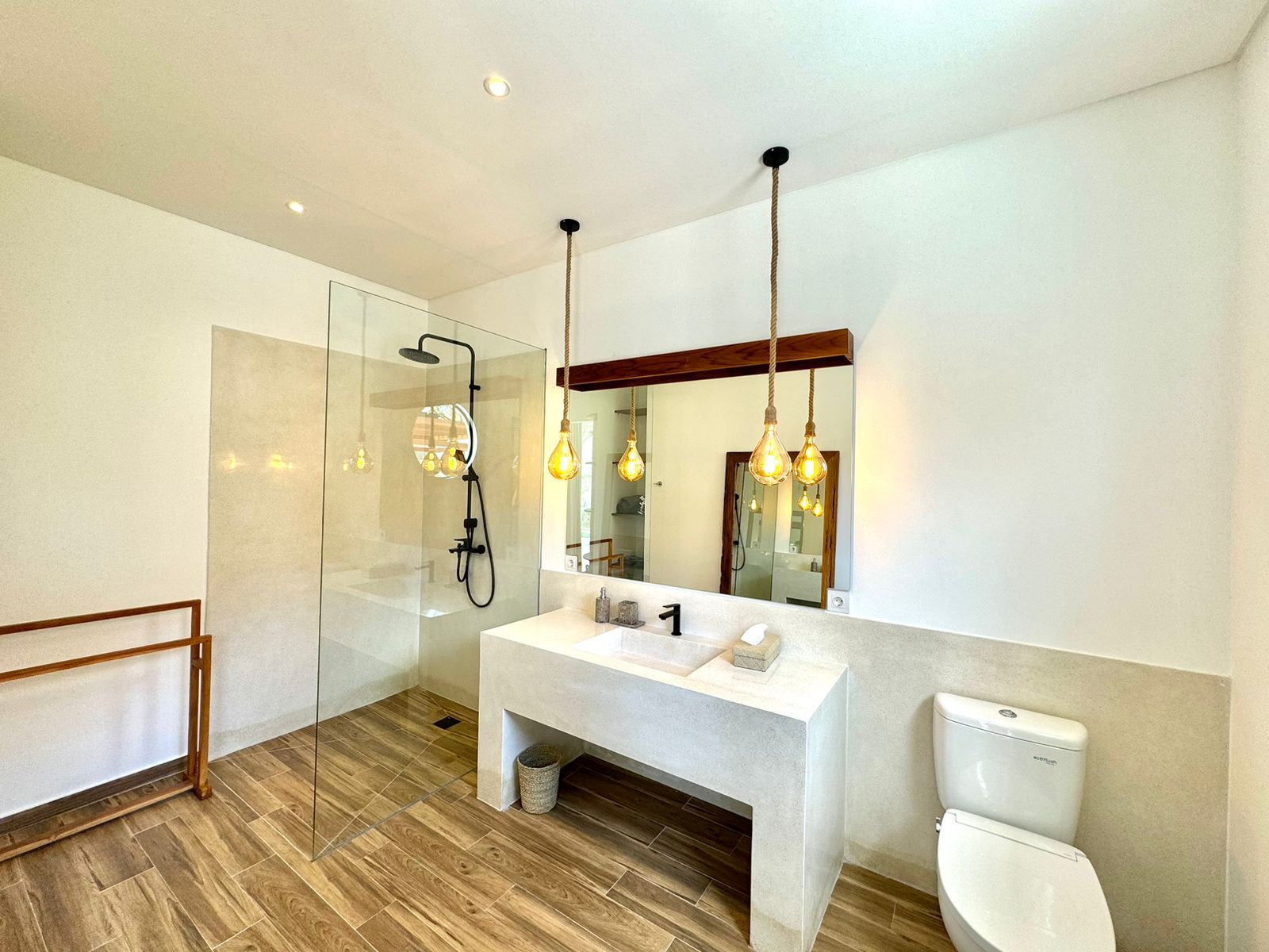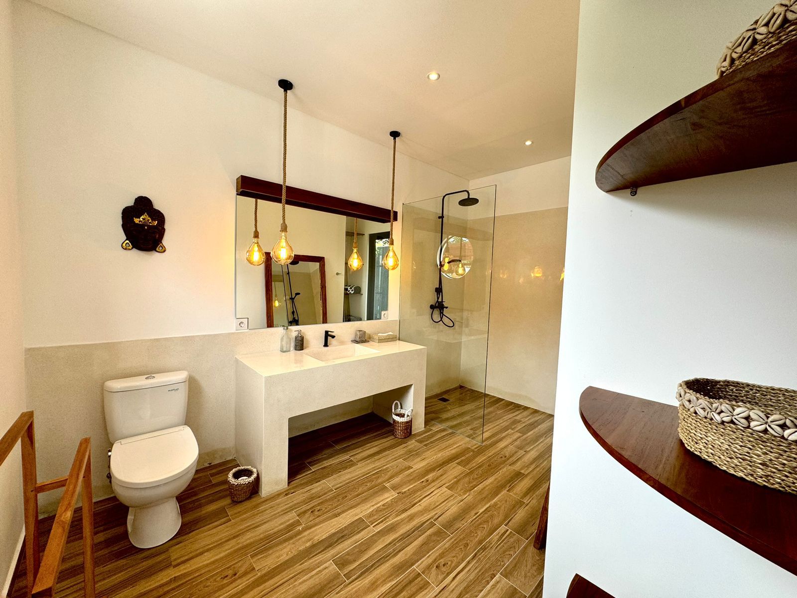 This stylish one-level villa offers three generously sized bedrooms, each with a private bathroom, along with an extra guest toilet for added comfort. The open-plan living and kitchen area flows effortlessly to the outdoor space, where a private pool and sunken lounge provide the ideal spot for unwinding or hosting in a peaceful tropical environment.