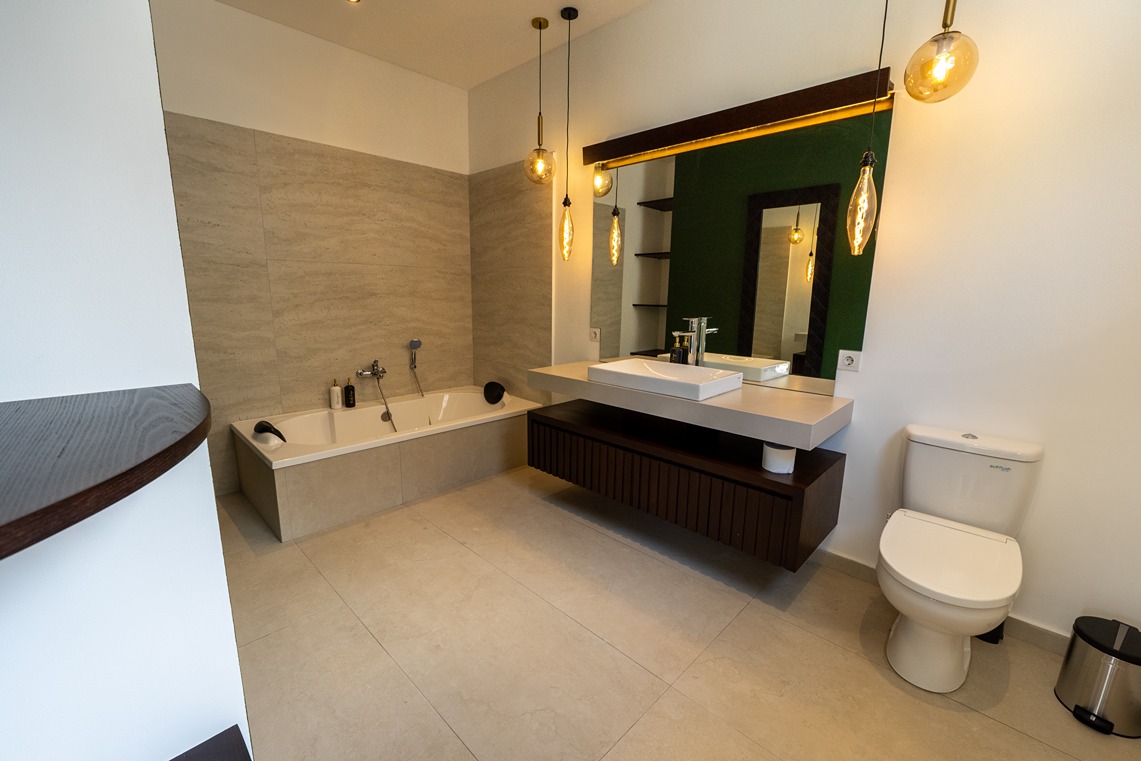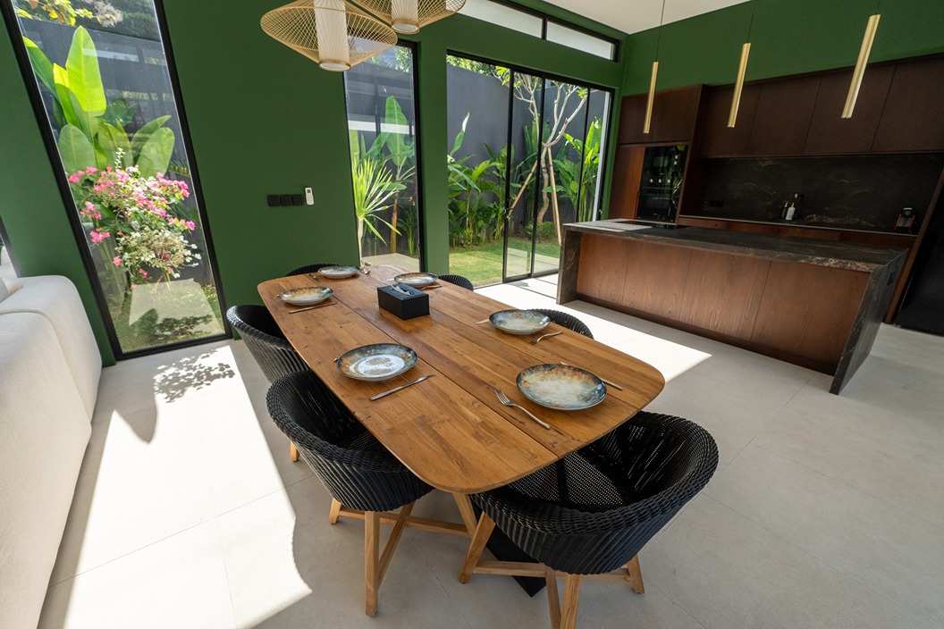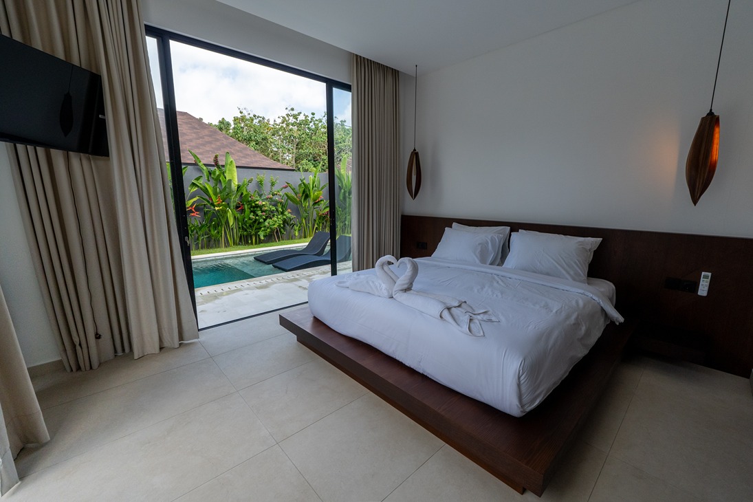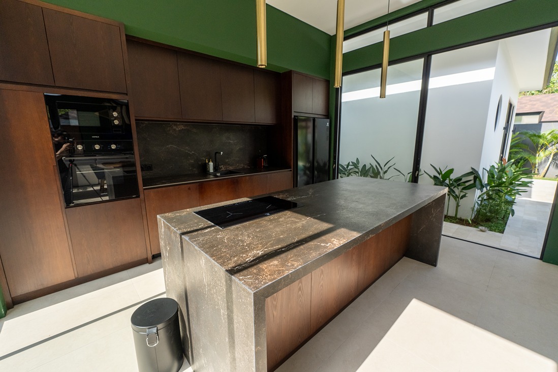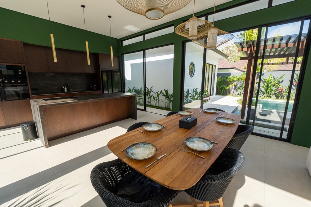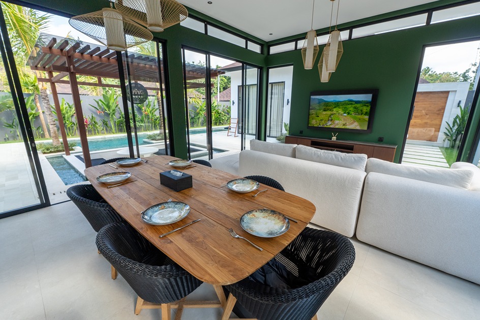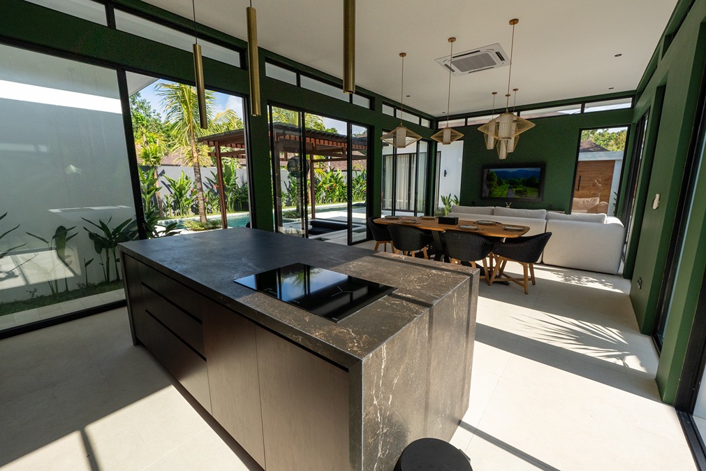 This single-story 3-bedroom villa offers privacy and comfort, with each bedroom featuring its own ensuite bathroom. The bright, naturally lit living room and the bedrooms are thoughtfully separated for a peaceful layout. The kitchen comes equipped with a washing machine for added convenience. Outside, enjoy a private pool with a sunken lounge, plus a wash and storage room. A perfect blend of functional design and tropical charm.