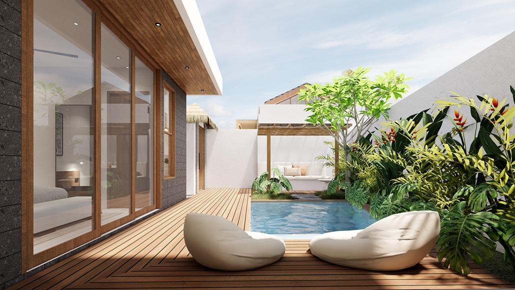 Nestled in the serene Nyang Nyang area, this modern tropical 1-bedroom villa offers effortless single-level living. Featuring an open-concept layout, a sleek kitchen, and smooth indoor-outdoor flow, it’s designed for comfort and relaxation. Surrounded by lush greenery, the private pool creates a peaceful hideaway just minutes from the pristine shores of Nyang Nyang Beach—ideal for couples or solo travelers seeking a stylish island escape.