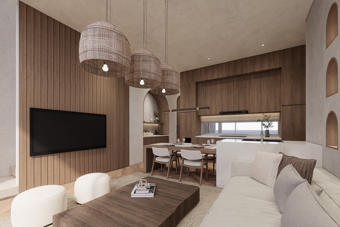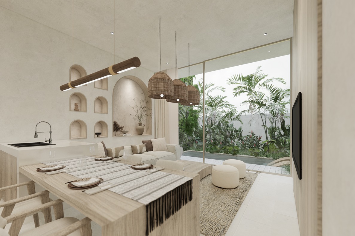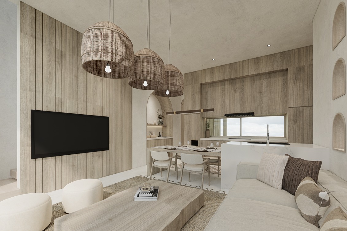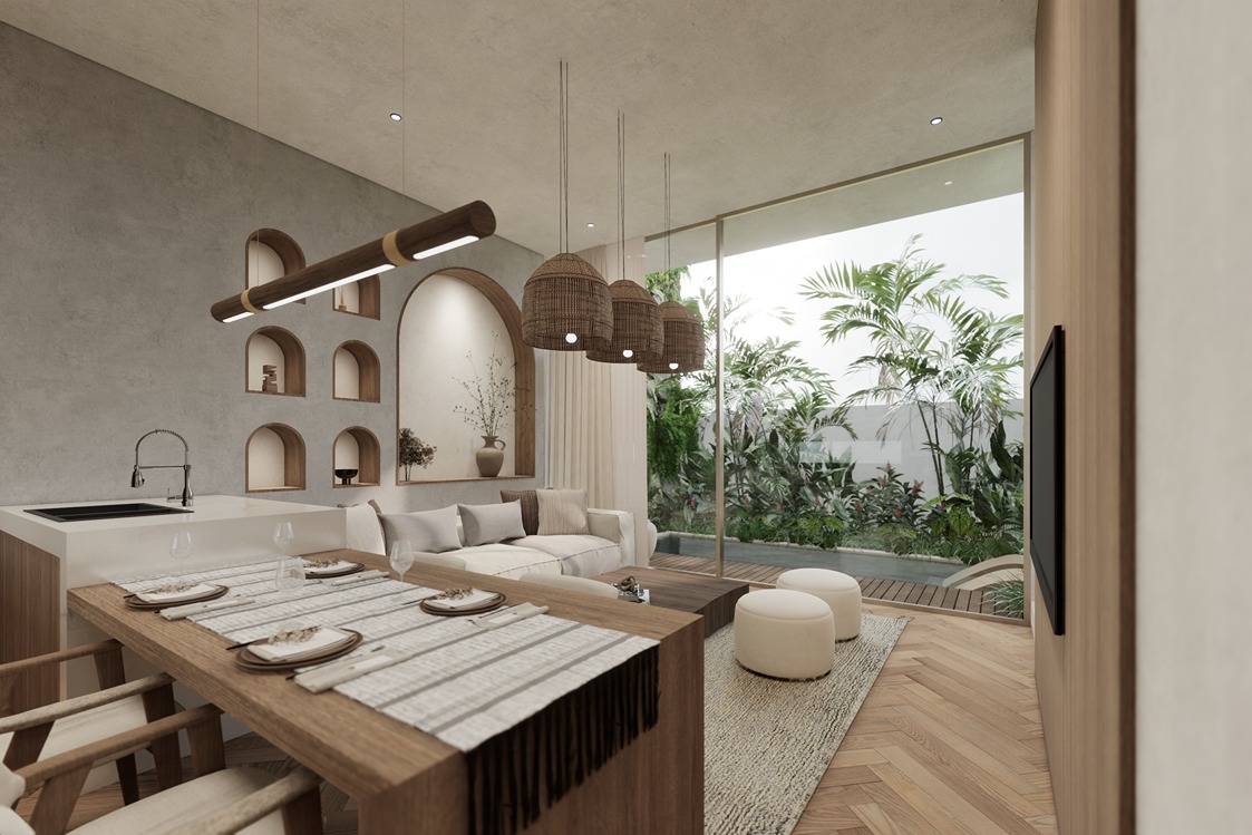 This 2-bedroom, 2-floor Mediterranean villa with a rooftop in Melasti offers modern coastal living in a secure gated complex. The design combines clean lines, arched details, and natural textures, enhanced by a private swimming pool and spacious interiors. Buyers can choose between two elegant finish options — a bright and airy light palette or a bold and sophisticated dark tone — allowing the villa to reflect individual style. With its rooftop for relaxing or entertaining and prime location near Melasti Beach, it’s an ideal blend of comfort, design, and lifestyle.