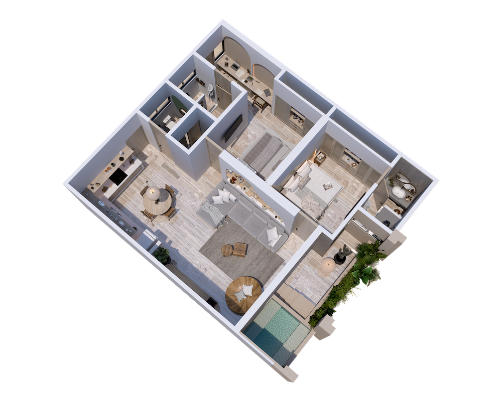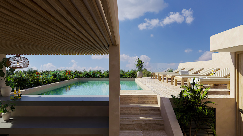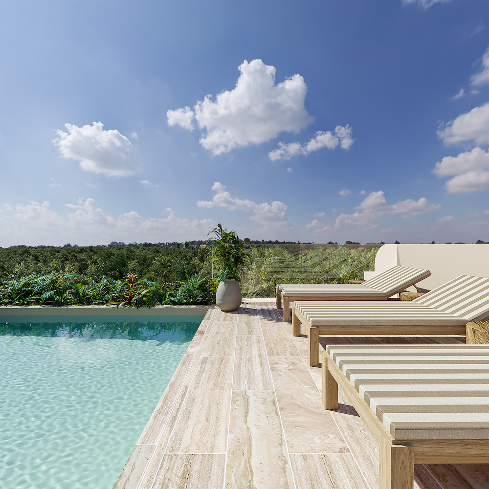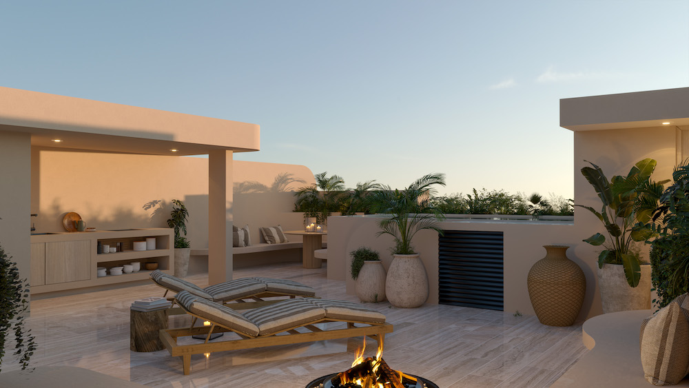 Investor tips Real estate ThailandDiscover the most exclusive apartment in this new residence in Tulum, Mexico. A large Penthouse on 2 floors and 199 sqm with 2 bedrooms, a living room + dining room and kitchen, en-suite bathrooms, and a terrace on the 2nd floor, on the roof of the residence. On this terrace, you can enjoy a swimming pool, a dining area to eat outside and enjoy the tropical ambience with views of the residence or the surrounding area. A furnishings package is available for those wishing to move in or rent out directly, with quality furniture arranged to create a luxurious, tropical lifestyle.