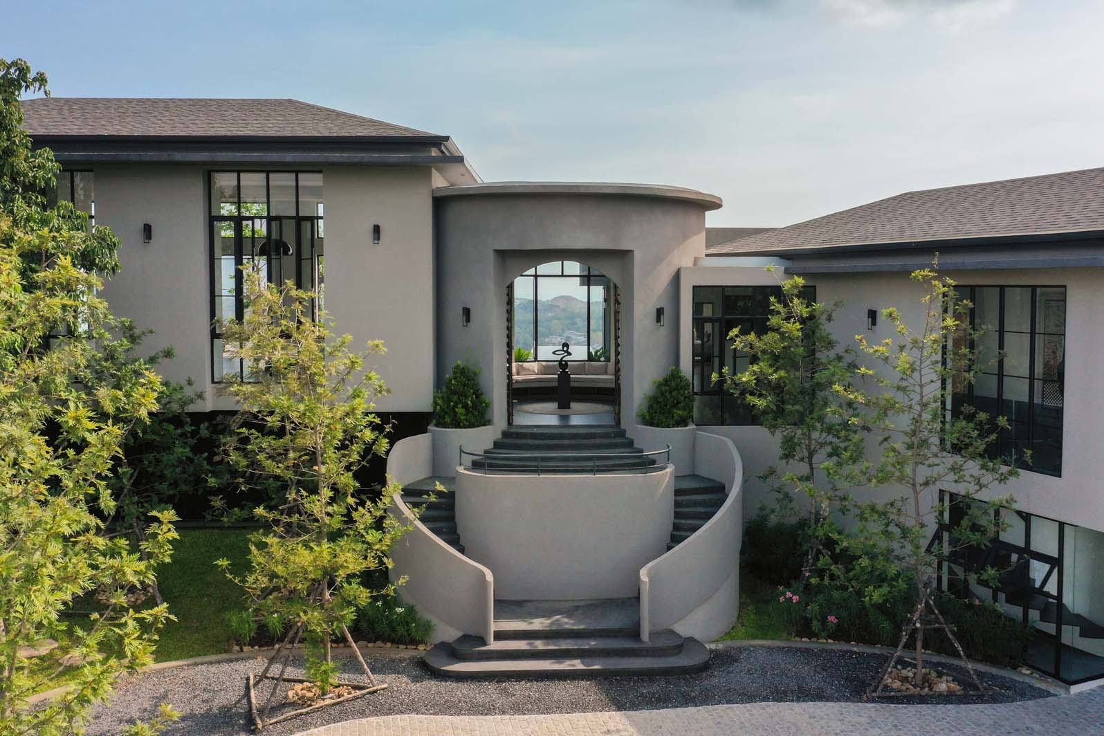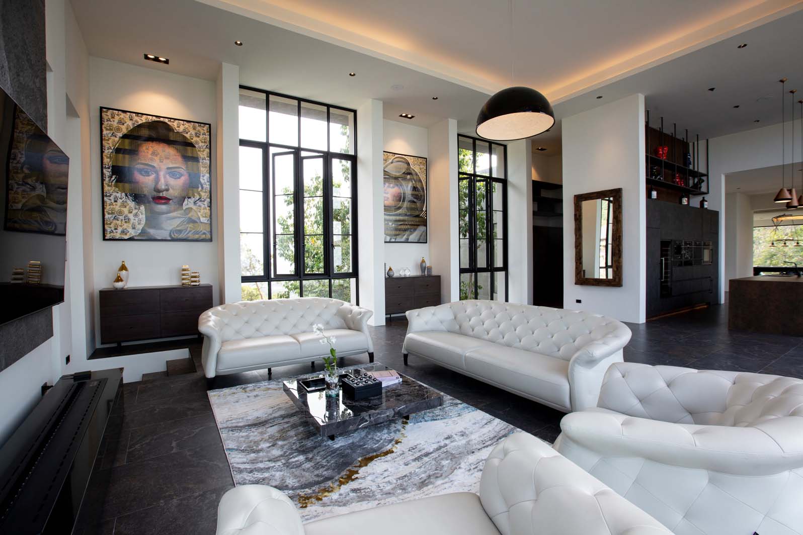 Step into the rotunda, where a magnificent skylight and soaring ceilings welcome you to a realm of relaxation and splendor. Divided into six meticulously crafted zones, Villa Raphy seamlessly blends architectural magnificence with unrivaled hospitality.