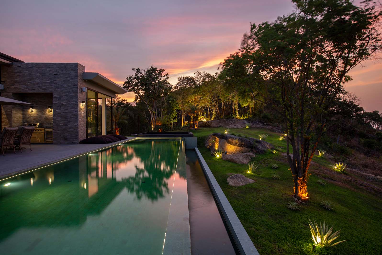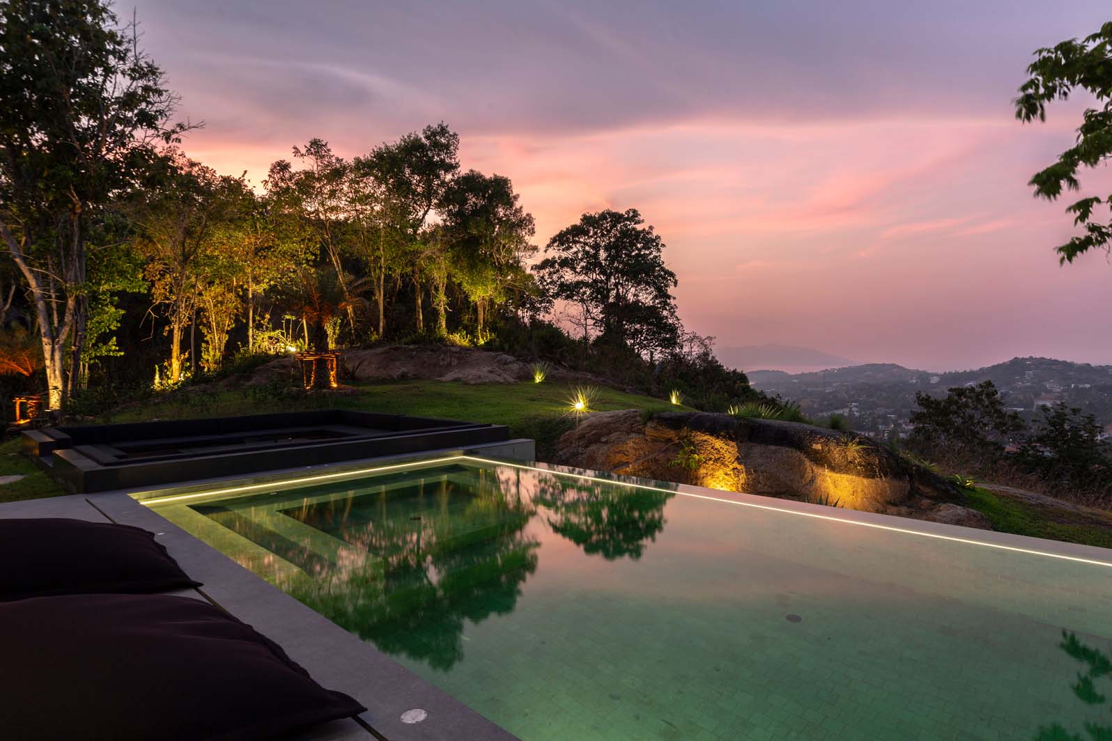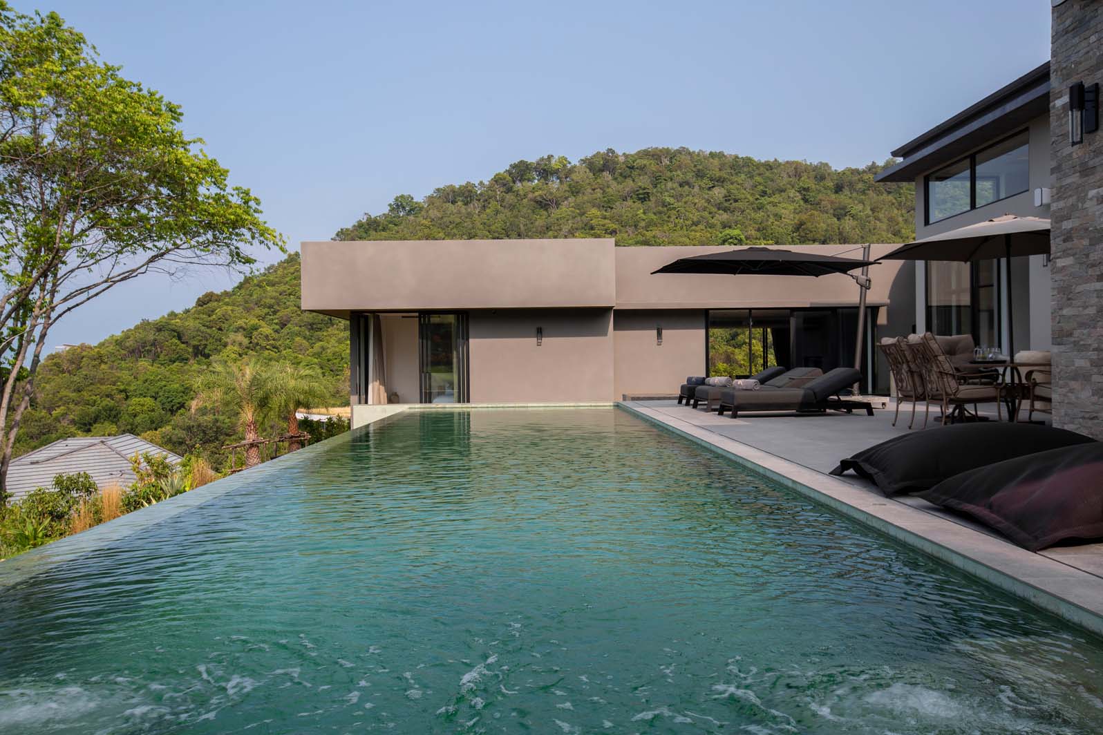 The “living” part invites you to luxuriate in a lavish living room with ambient electric fire, a state-of-the-art kitchen equipped with the latest appliances, and a zen area overlooking the majestic Chaweng mountain. Entertainment abounds in the games room, complete with table football, pool table, poker table, and arcade games.