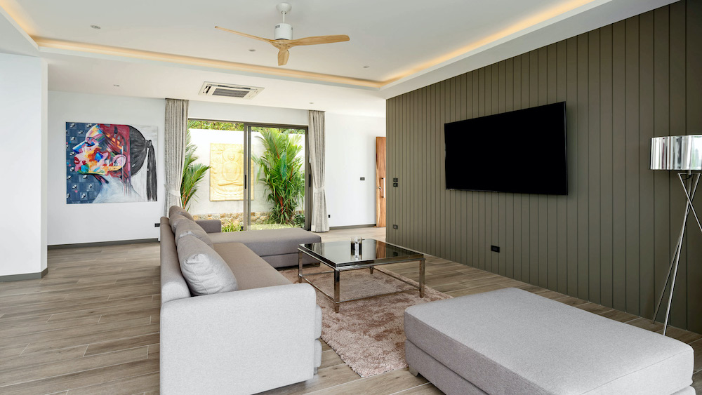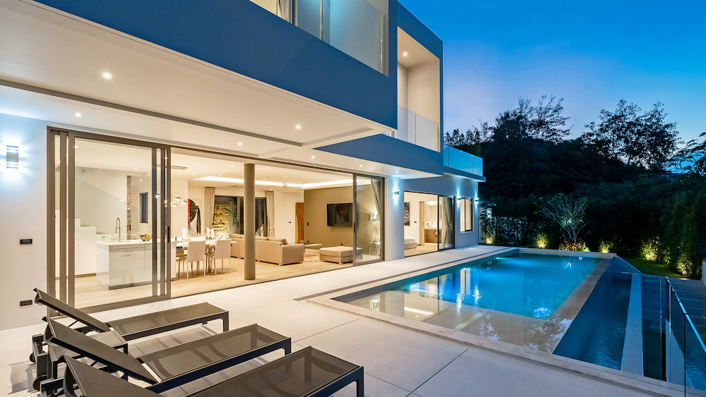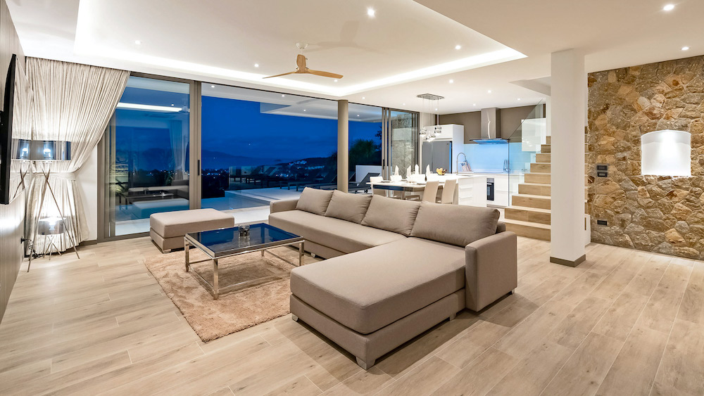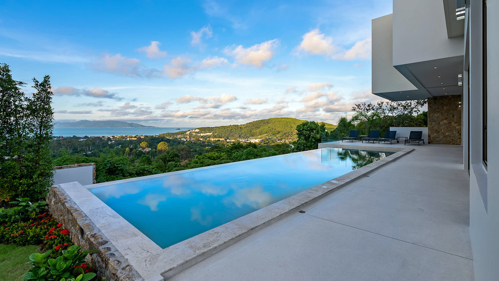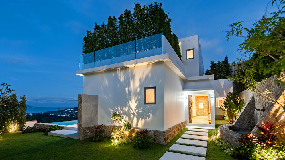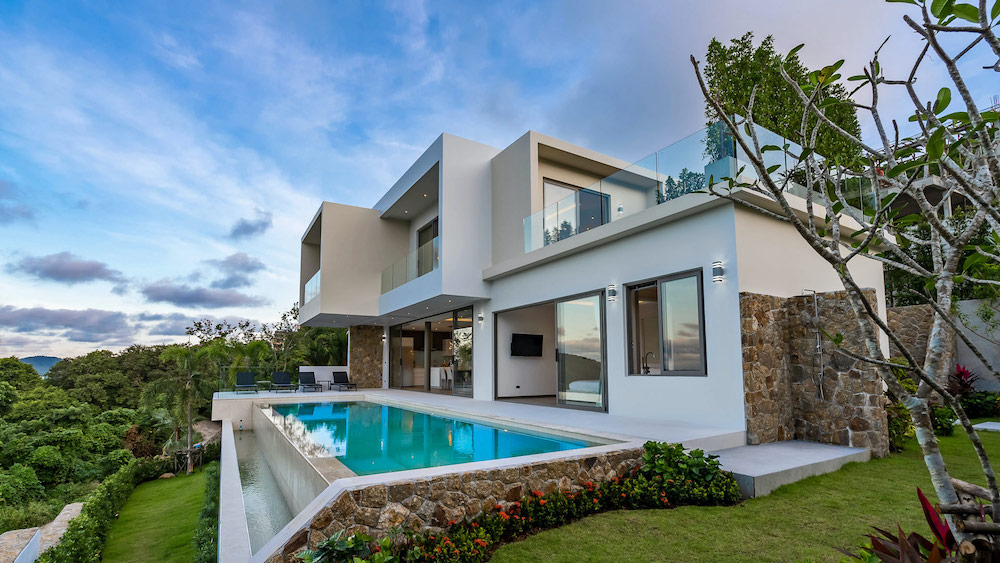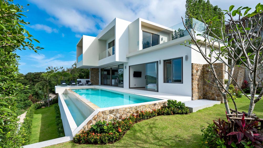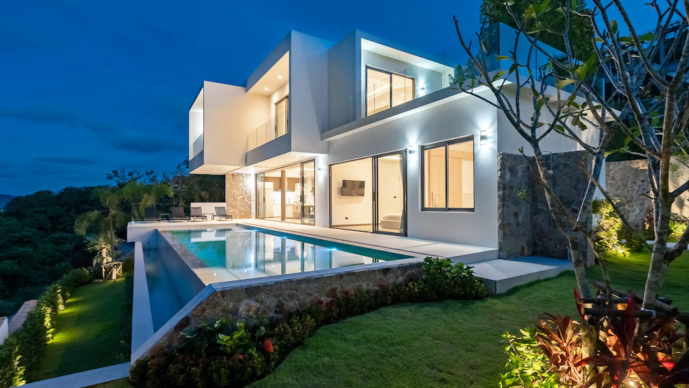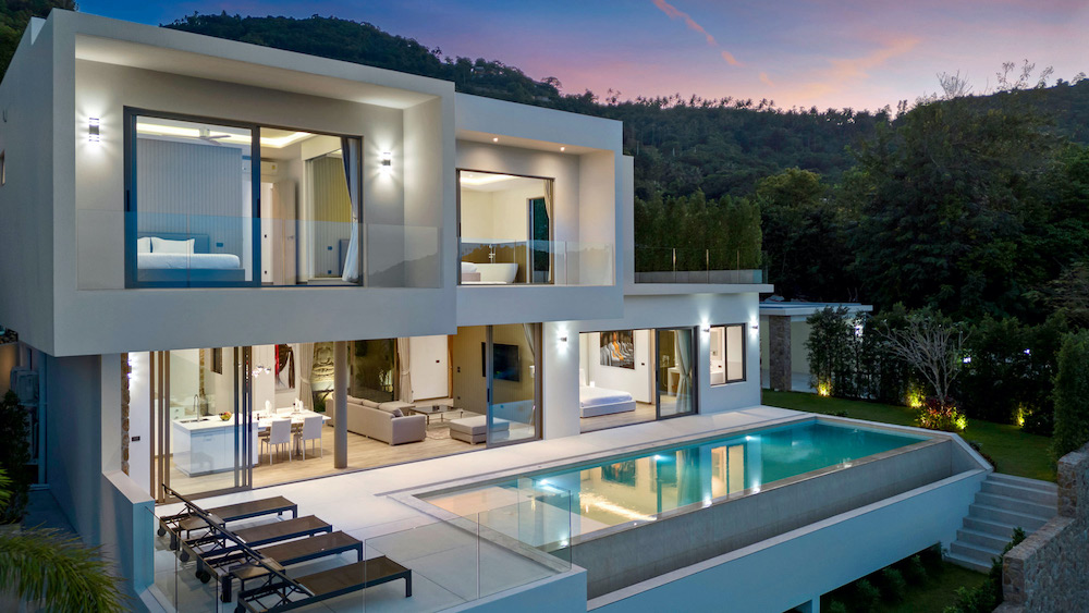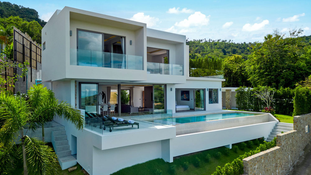 Investor tips Real estate ThailandA contemporary Koh Samui villa located in the northeast of the island on the hills of Bophut. Ideally located, access is via a private tarmac road just 5 minutes' drive from Fisherman's Village beach, stores and restaurants, 5 minutes from the BIG C supermarket, and just 10 minutes' drive from the international airport.