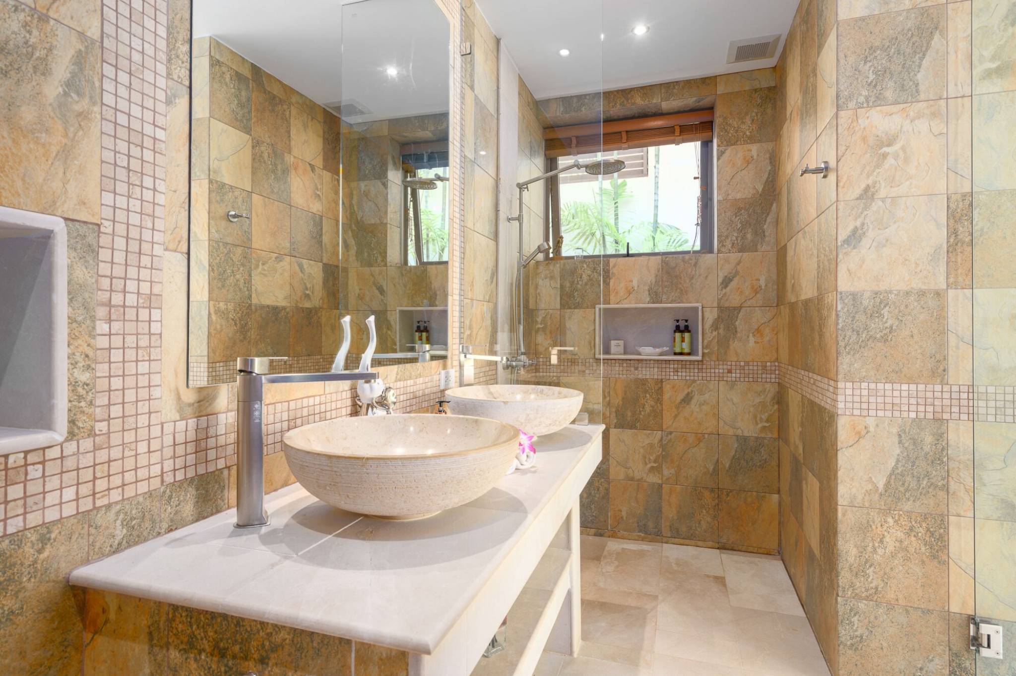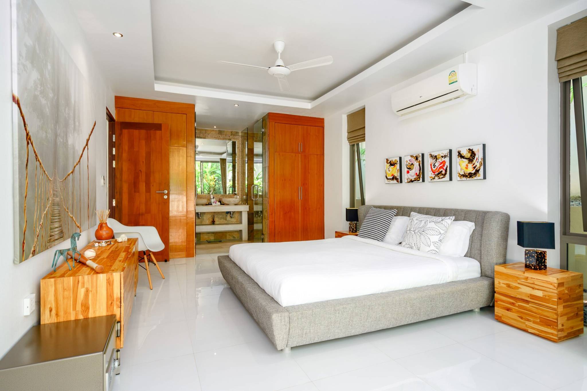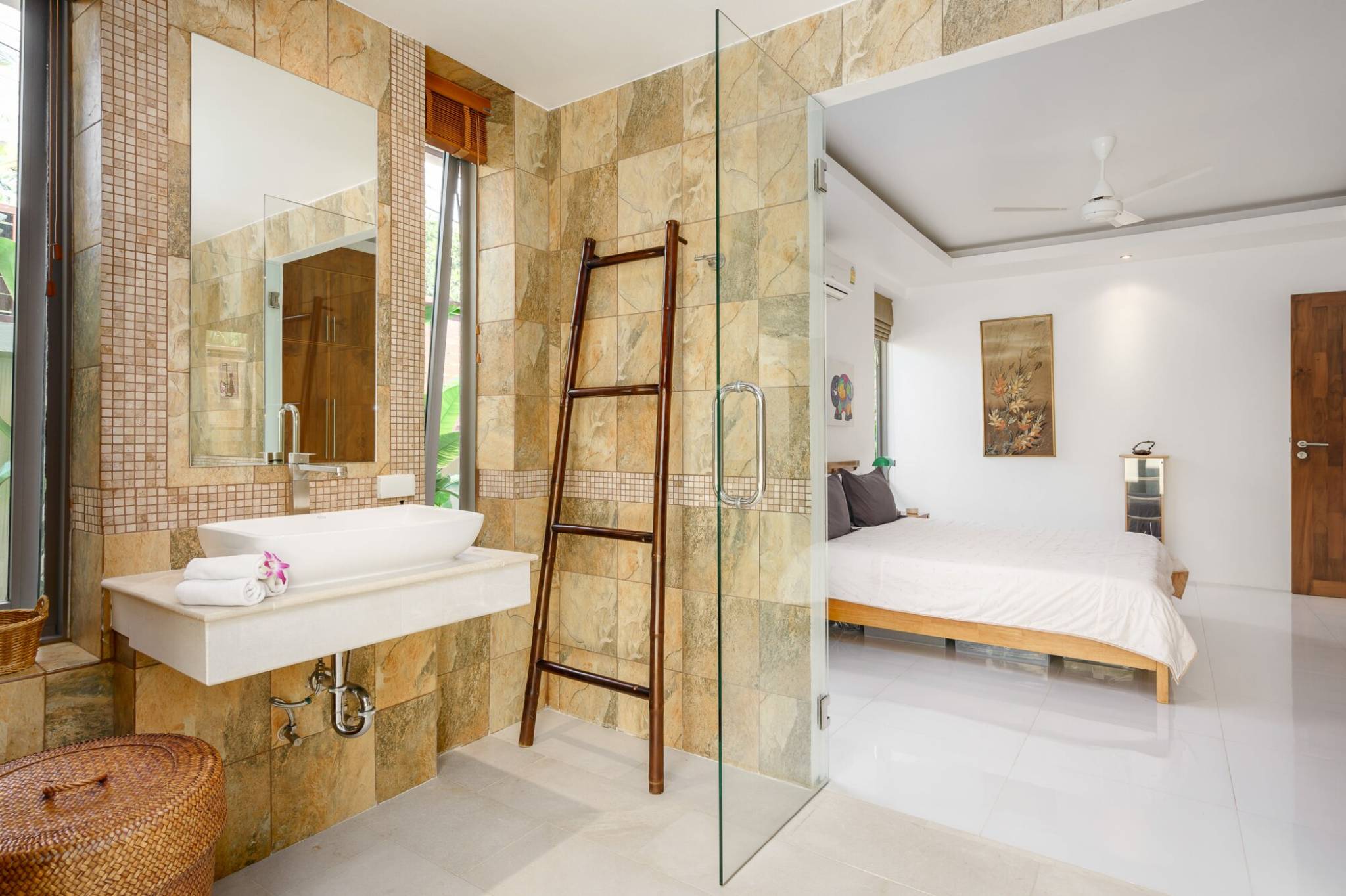The home features three spacious bedrooms, two with en-suite bathrooms, for maximum privacy and comfort.