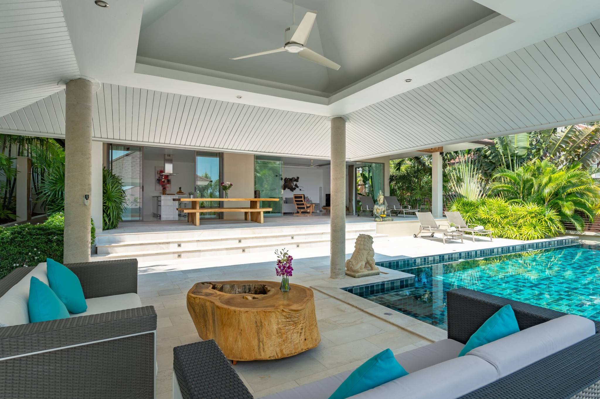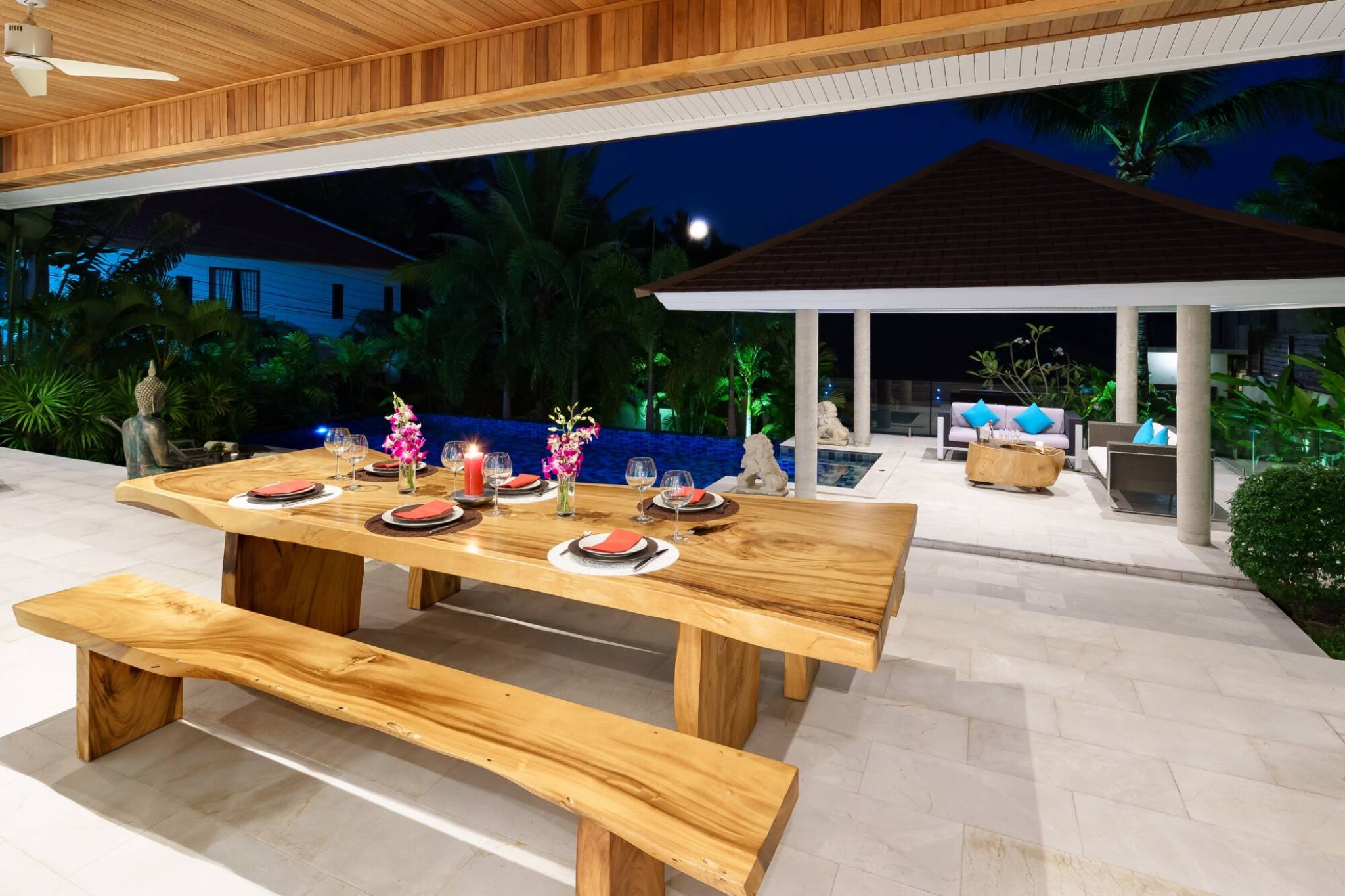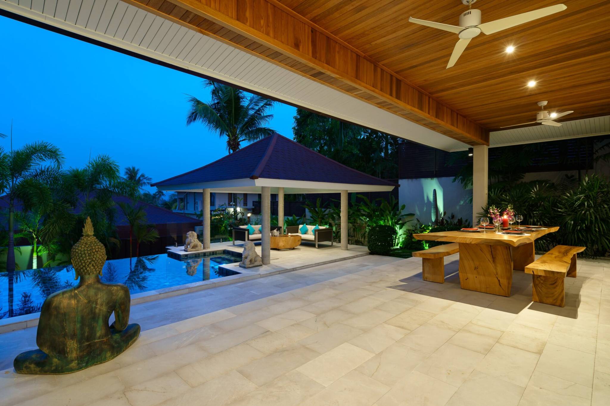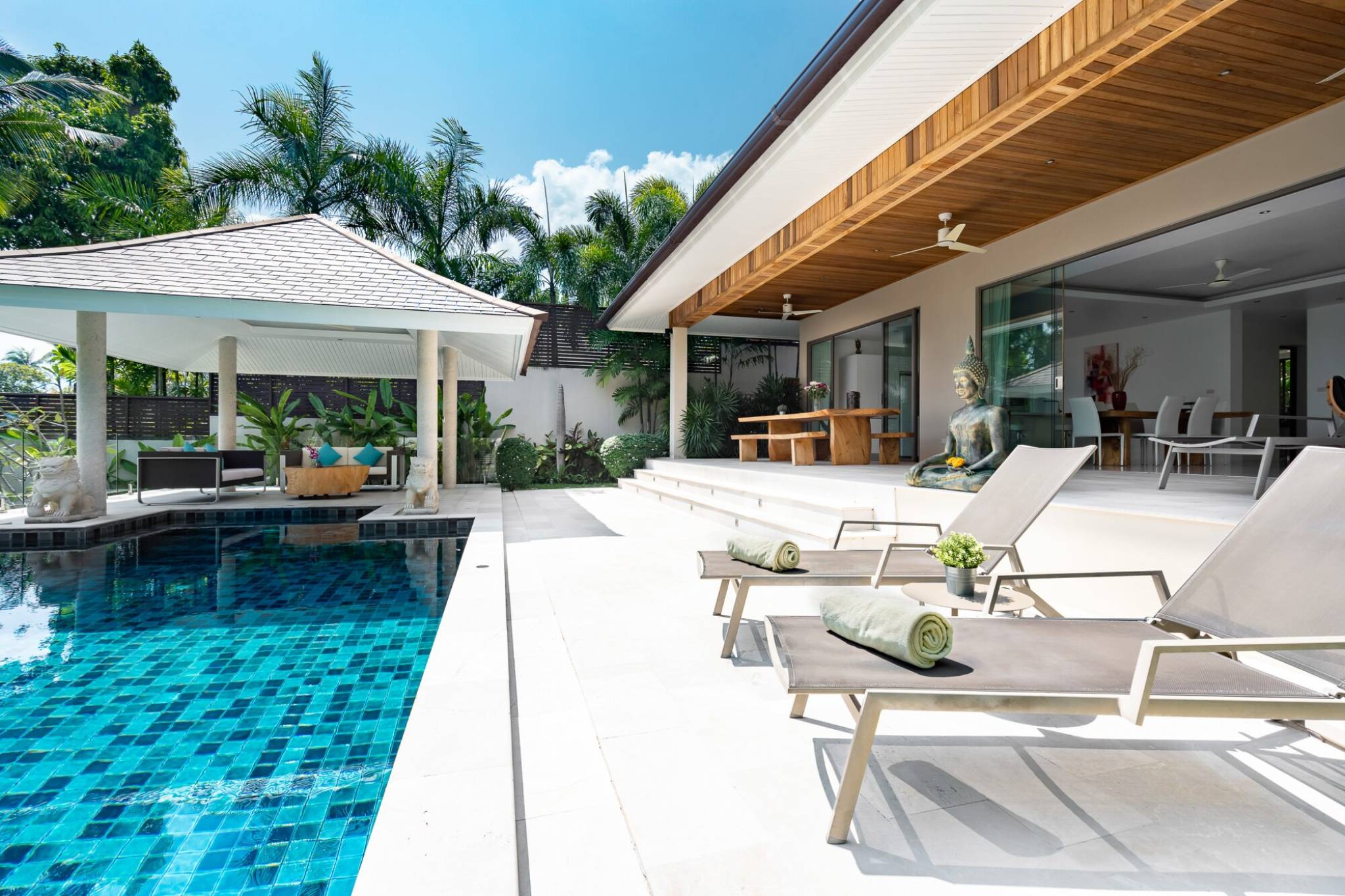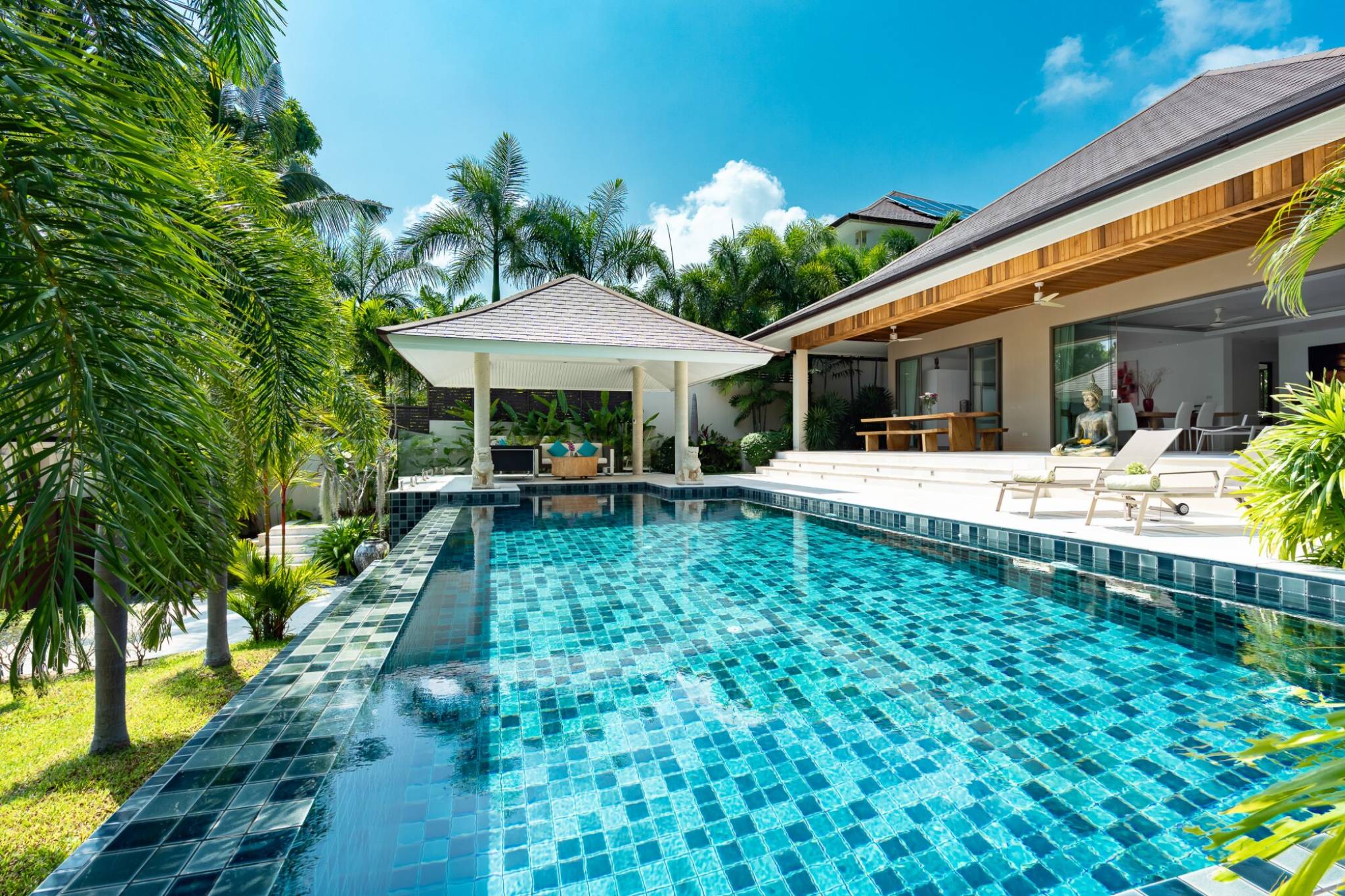 One of the highlights of this villa is its magnificent swimming pool. Whether you want to soak up the sun, cool off or entertain guests, this space is the perfect place to do it. The outdoor space is also equipped with a sala, making it ideal for gatherings.