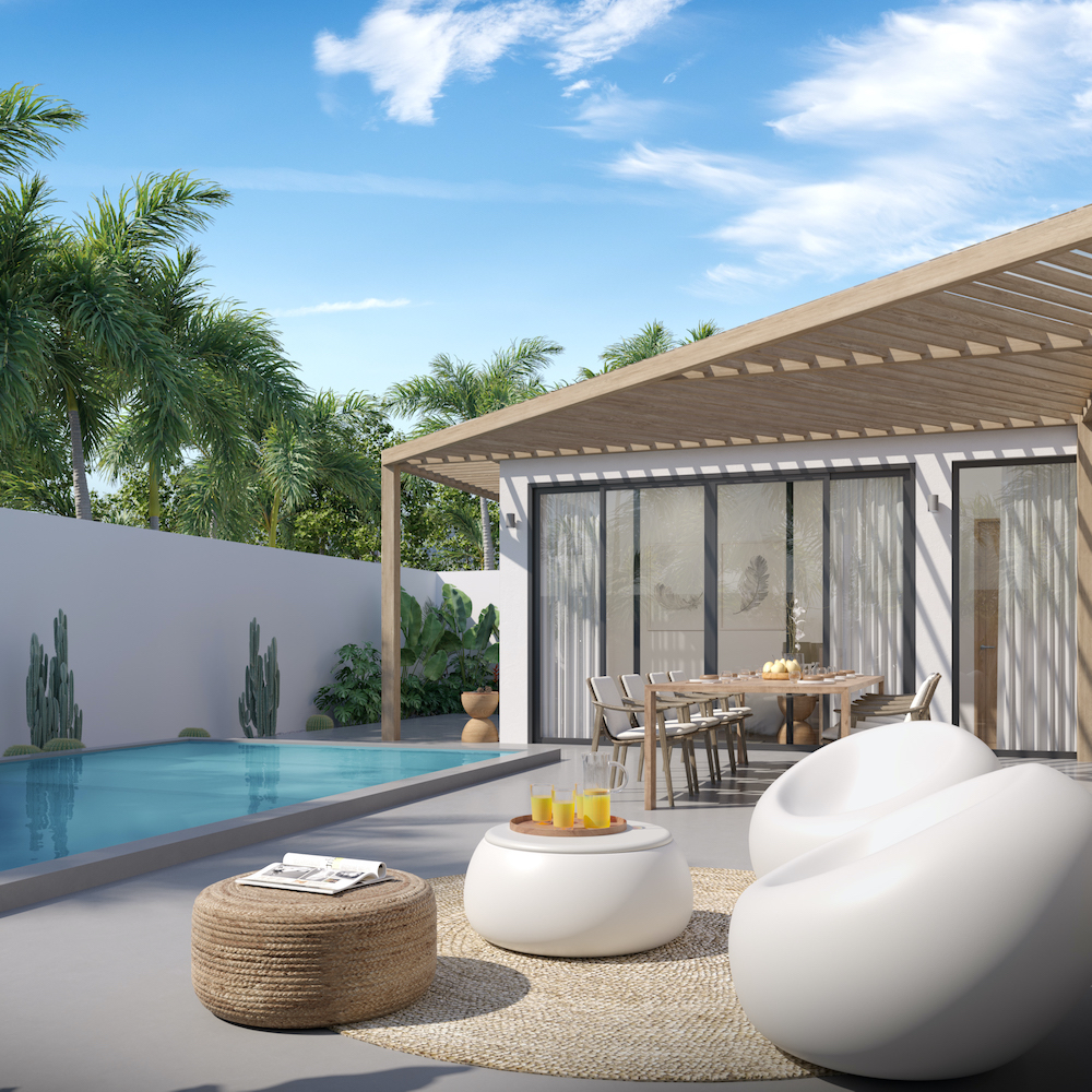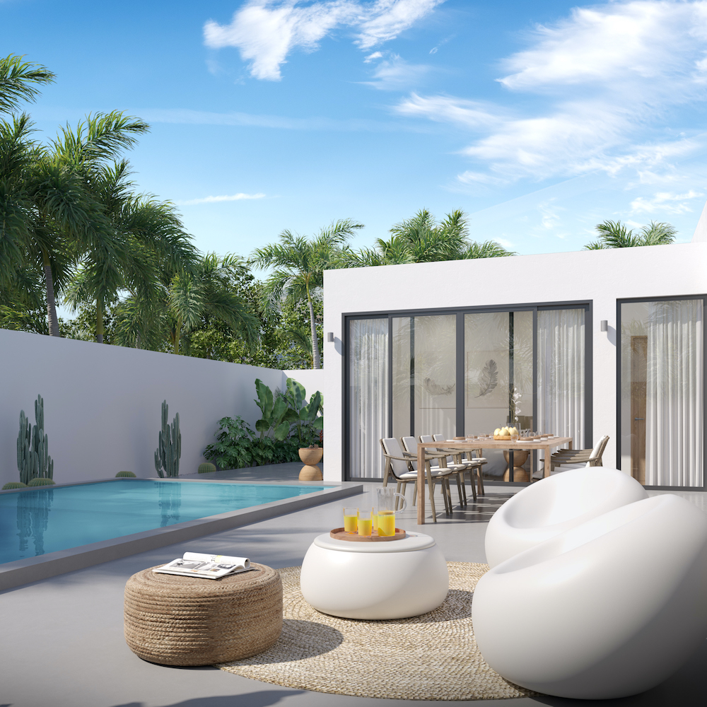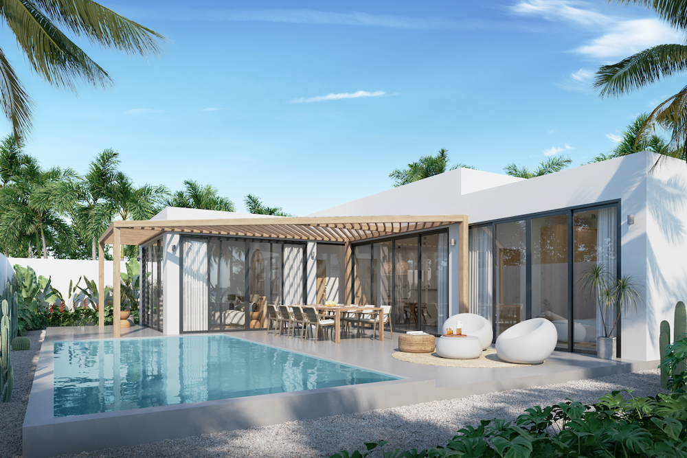 Style Architectural : La villa se distingue par son design moderne, mettant en avant des lignes épurées et un toit plat, fusionnant harmonieusement avec le paysage tropical environnant.