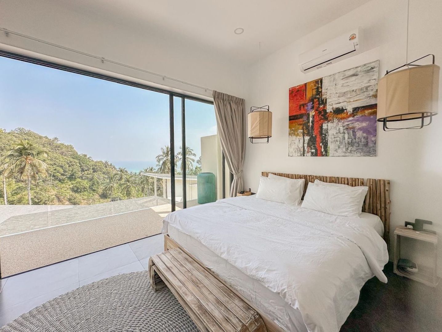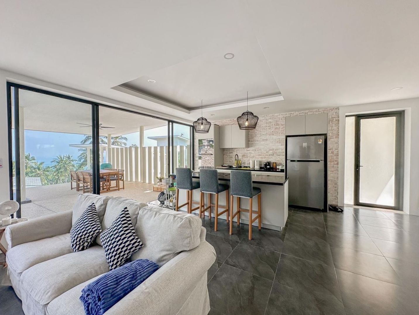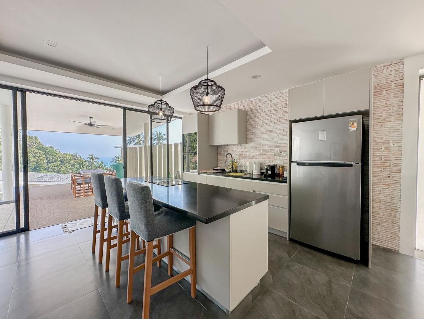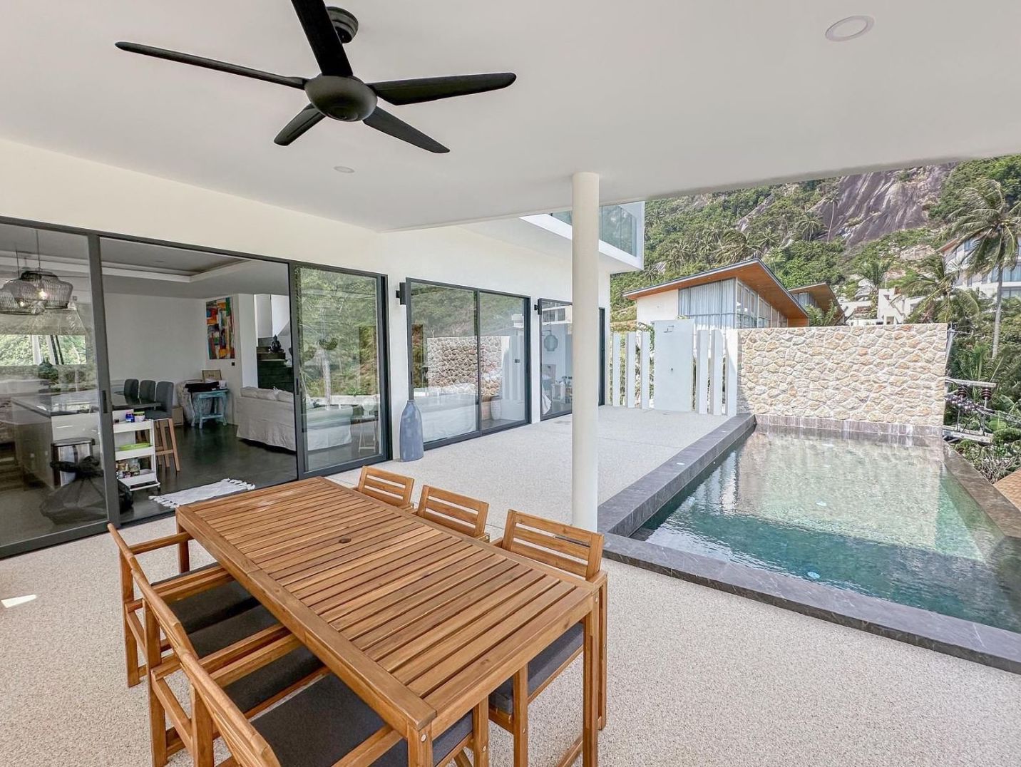 Investor tips Real estate ThailandSea-view 3-bedroom villa with private pool in Lamai, each with its own bathroom. The villa has an open design: living and dining rooms with bay windows, offering plenty of natural light. Enjoy a private pool and outdoor living space for relaxing and entertaining, in a verdant and tranquil environment.